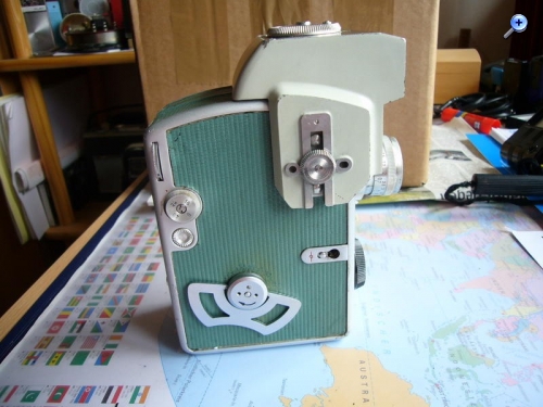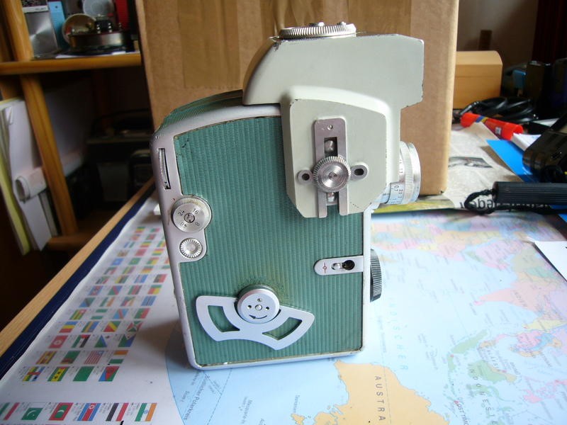 Sucher: Durchsichtsucher mit Parallaxenausgleich, Rahmen f. 25 u 40 mm Teleobjektiv