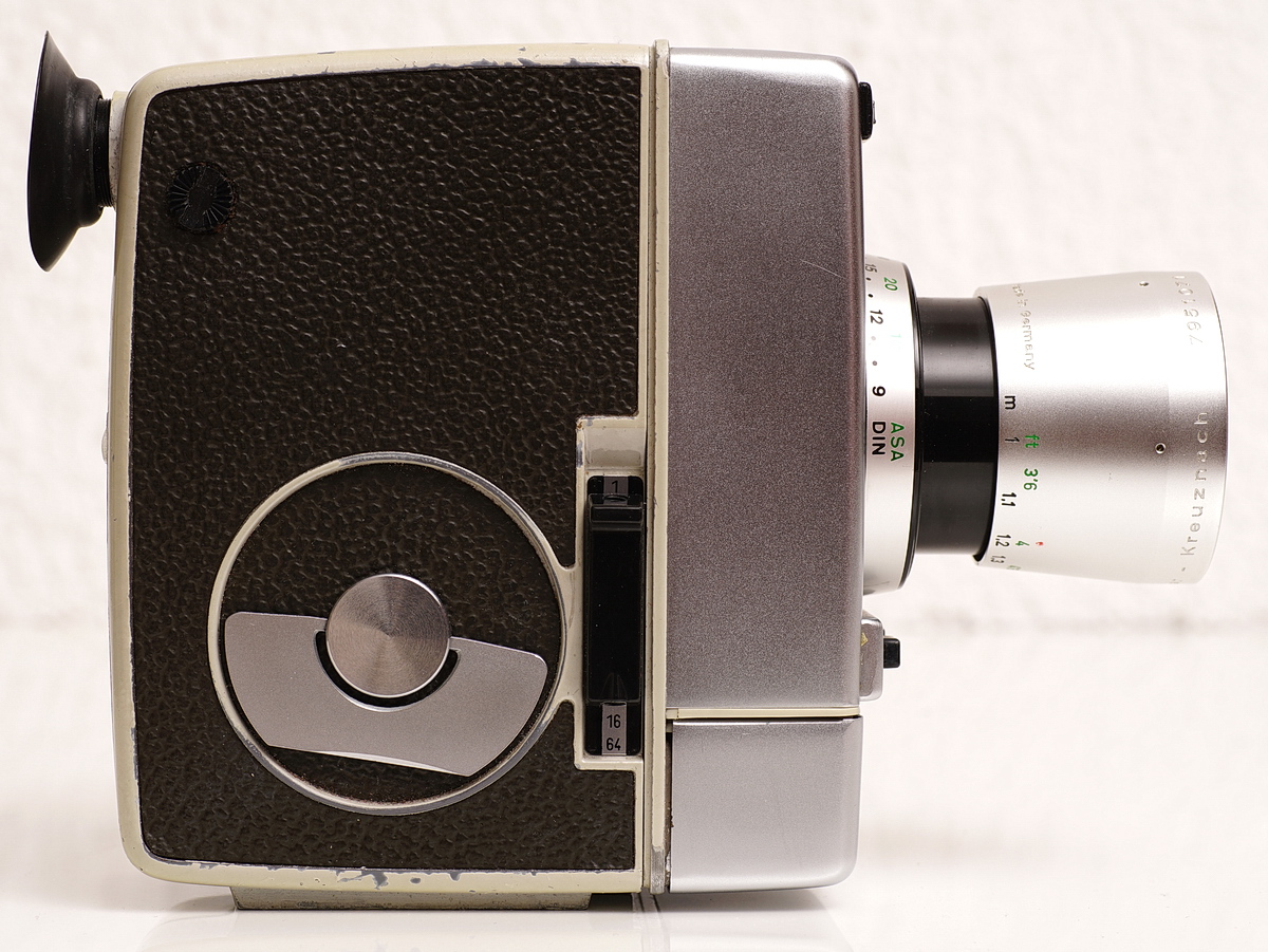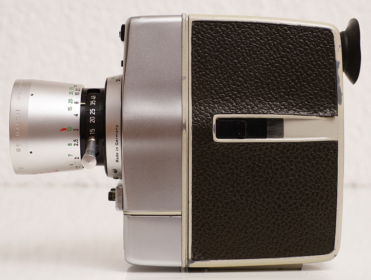 Die P1 hatte alle Einstellungen, die sich ein Schmalfilmer wünschte, z.B. Varioobjektiv, variabel einstellbare Geschwindigkeit von 12 bis 64 Bilder pro sec, Überblendmöglichkeit.