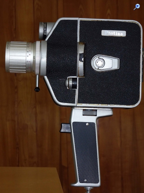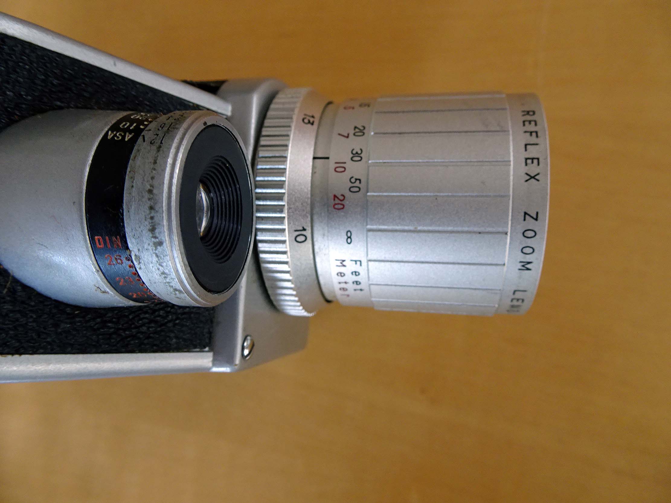 Wer könnte diese Cine-Kamera wohl wann in Japan gebaut haben? Finde dazu im Standardbuch von Lossau aber auch sonst nichts. ein Ebay-Fang aus GB, 10 Pfund plus jede Menge Porto, aber noch kein Zoll: Doppelacht Photina Reflex8 Made in Japan, Handkurbelaufzug Uhrwerkmotor, 12,16,24 und 32er-Gang, Gehäuse Nr. 138586, Reflex Zoom Lens F:1,8 f=10-40 Nr. 19906, Drehzoom, Meter Skala bis 1,5m, Feet Skala bis 5 feet, 42mm Filterschraubgewinde, Cds Belichtungsmesser eingebaut für automatik und manuel, Irisblende vor der Cds-Zelle zwecks Anpassung an die Filmempfindlichkeit von 11 bis 26 DIN oder 10 bis 320 ASA, rot/grün-Signal im Reflexsucher eingeblendet, Signalbeleuchtung über seitliche Wabenmattscheibe.