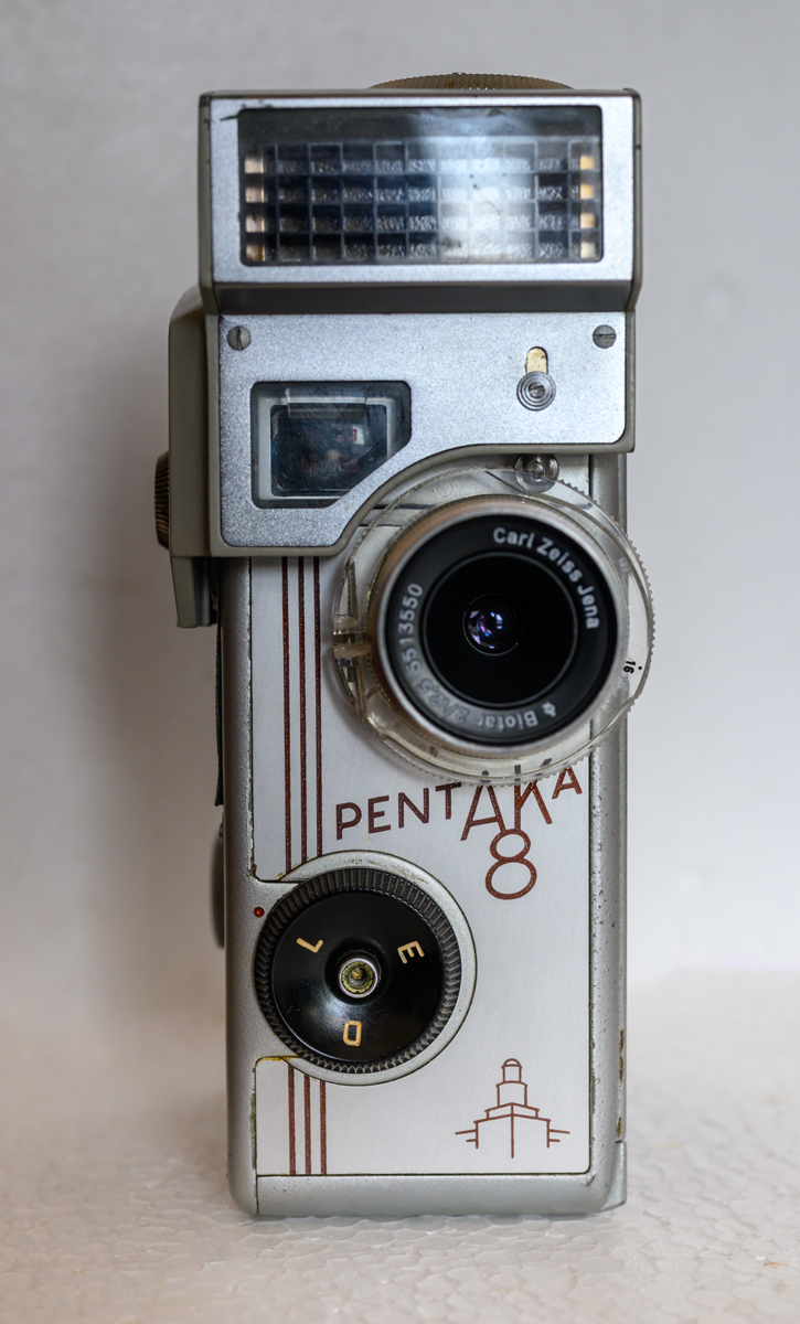 Für etwas höhere Ansprüche kam dann 1956 die PENTAKA 8 in den Handel, gebaut von den aus Zeiss-Ikon hervorgegangenen Kamerawerken Dresden, die dann Ende der 50er Jahre zum VEB Pentacon wurden. (die komplizierte Namensänderungen von Dresdens Kameraindustrie in den 1950igern Jahren sind umfangreich nachzulesen)