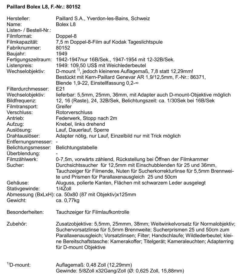 Hier eine Bolex L8 aus dem Jahr 1949/50: