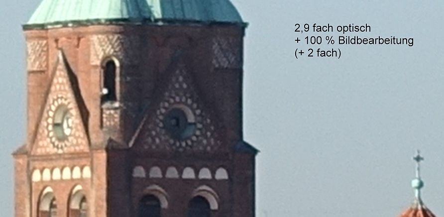 Es mag sein, dass andere Bildbearbeitungsprogramme die 200 Prozent besser hinbekommen, aber der Klarzoom scheint ganz gut zu arbeiten, jedenfalls fällt die vielleicht tote Vergrößerung erträglich aus. Ich werde den Klarzoom also nutzen für kritische Entfernungen.