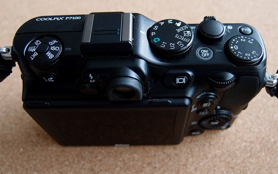 Obwohl der optische Sucher der P7100 nur ca. 85 % des tatsächlichen Bildes zeigte, war der Sucher im Hellen bei starker Sonne schon eine erhebliche Arbeitserleichterung. Dieser fehlende optische Sucher wurden wohl auch von vielen Kunden reklamiert. So kam nun die P7800 auf den Markt, die wieder einen optischen Sucher bietet, genauer einen elektonisch/optischen Sucher. Er soll sogar 100 % des Bildes zeigen.