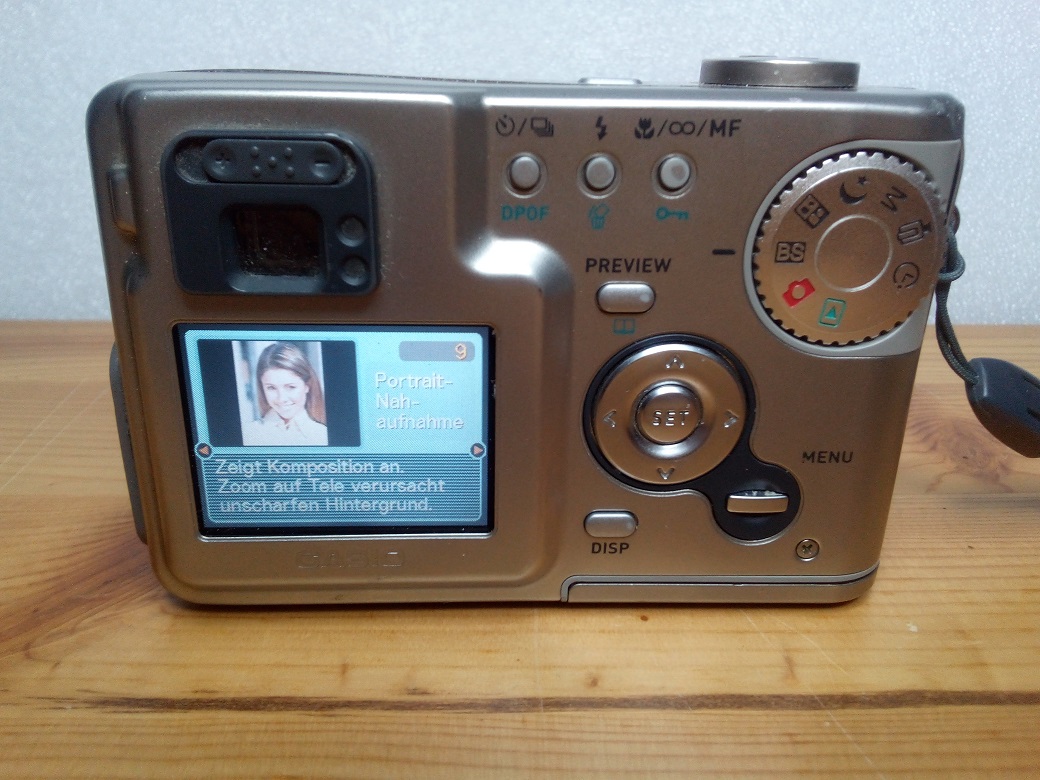 Aus heutiger Sicht mag die Kamera wegen ihres massiven Körpers etwas plump und der Monitor winzig erscheinen. Allerdings ist die Casio sehr stabil. Das vorliegende Exemplar hat reichlich "Kampfspuren" am Gehäuse und funktioniert immer noch einwandfrei.