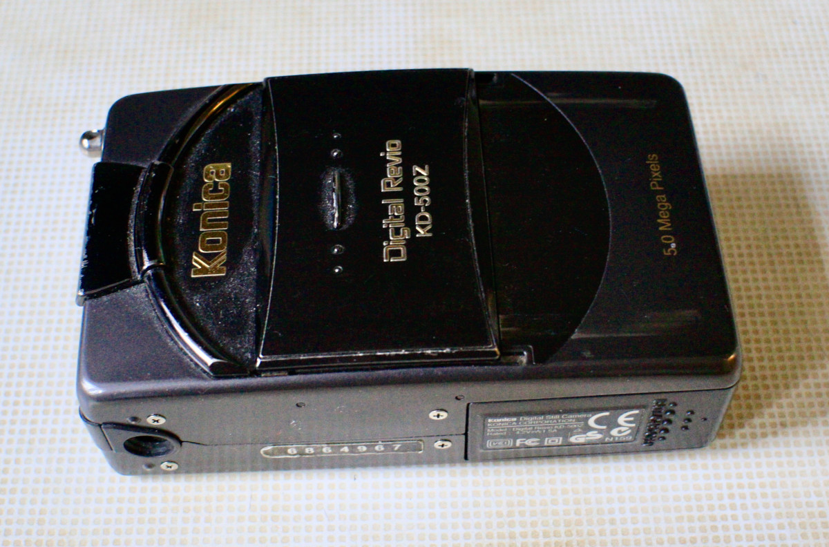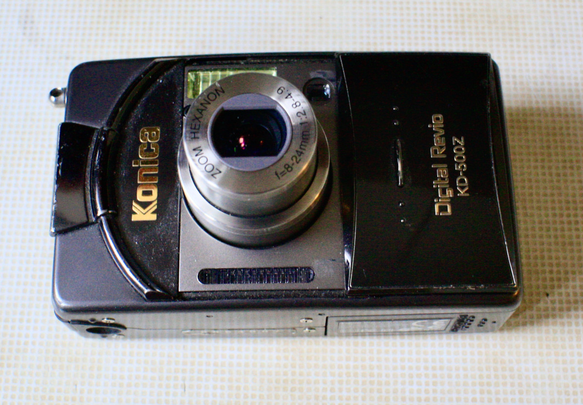 Modell: Konica Digital Revio KD-500Z Hersteller: Konika Herstellungsjahr: Oktober 2002 bis 4. Quartal 2003 Sensor: CCD-Sensor 1/1,8" 7,2 x 5,3 mm (Cropfaktor 4,8) 5,2 Megapixel (physikalisch), 5,0 Megapixel (effektiv) Pixelpitch 2,8 µm Fotoauflösung 2.592 x 1.944 Pixel, 2.048 x 1.536 Pixel, 1.600 x 1.200 Pixel, 640 x 480 Pixel Bildformate: JPG Videoauflösung: 320 x 240 Maximale Aufnahmedauer 30 sek, AVI, WAV Objektiv: Brennweite 39 bis 117 mm (35mm-equivalent), 3-fach Zoom, Digitalzoom 3-fach Schärfebereich: 50 cm bis unendlich (Weitwinkel), 80 cm bis unendlich (Tele) Makrobereich 6 cm (Weitwinkel) Blenden: F2,8 bis F4,7 (Weitwinkel), F4,9 bis F8,2 (Tele) Autofokus-Funktionen: Einzel-Autofokus, kontinuierlicher Autofokus Sucher: Optischer Sucher Monitor: Monitor vorhanden Mittenbetonte Integralmessung, Spotmessung Belichtungszeiten: 1/2.000 bis 1 s (Automatik) Belichtungssteuerung: Programmautomatik Belichtungskorrektur: -0,6 bis +0,6 EV mit Schrittgröße von 1/3 EV Lichtempfindlichkeit: ISO 100 bis ISO 400 (Automatik) Motiveprogramme: Landschaft, Nachtporträt, 0 weitere Motivprogramme Weißabgleich: Automatik, Wolken, Sonne, Leuchtstofflampe, Glühlampenlicht Selbstauslöser: Selbstauslöser mit Abstand von 3 s, Besonderheiten: oder 10 s (wahlweise) Blitz: eingebauter Blitz, Blitzreichweite 0,5 bis 3,5 m bei Weitwinkel 0,5 bis 2,0 m bei Tele Blitzfunktionen: Automatik, Blitz ein, Blitz aus, Langzeitsynchronisation, Rote-Augen-Reduktion Bildstabilisator: kein optischer Bildstabilisator Speicher: SD-Karte Interner Speicher: 2 MByte) Stromversorgung: 1 x Lithiumionen (Li-Ion) Akku (3,6 V) Wiedergabe-Funktionen: Bildindex, Diashowfunktion Anschlüsse: USB Stativgewinde: 1/4" Besonderheiten und Sonstiges Wiedergabe-Zoom Gewicht: 248 g (betriebsbereit) Abmessungen: B x H x T 94 x 56 x 30 mm mitgeliefertes Zubehör: Lithiumionen-Akku, Ladegerät, Netzgerät