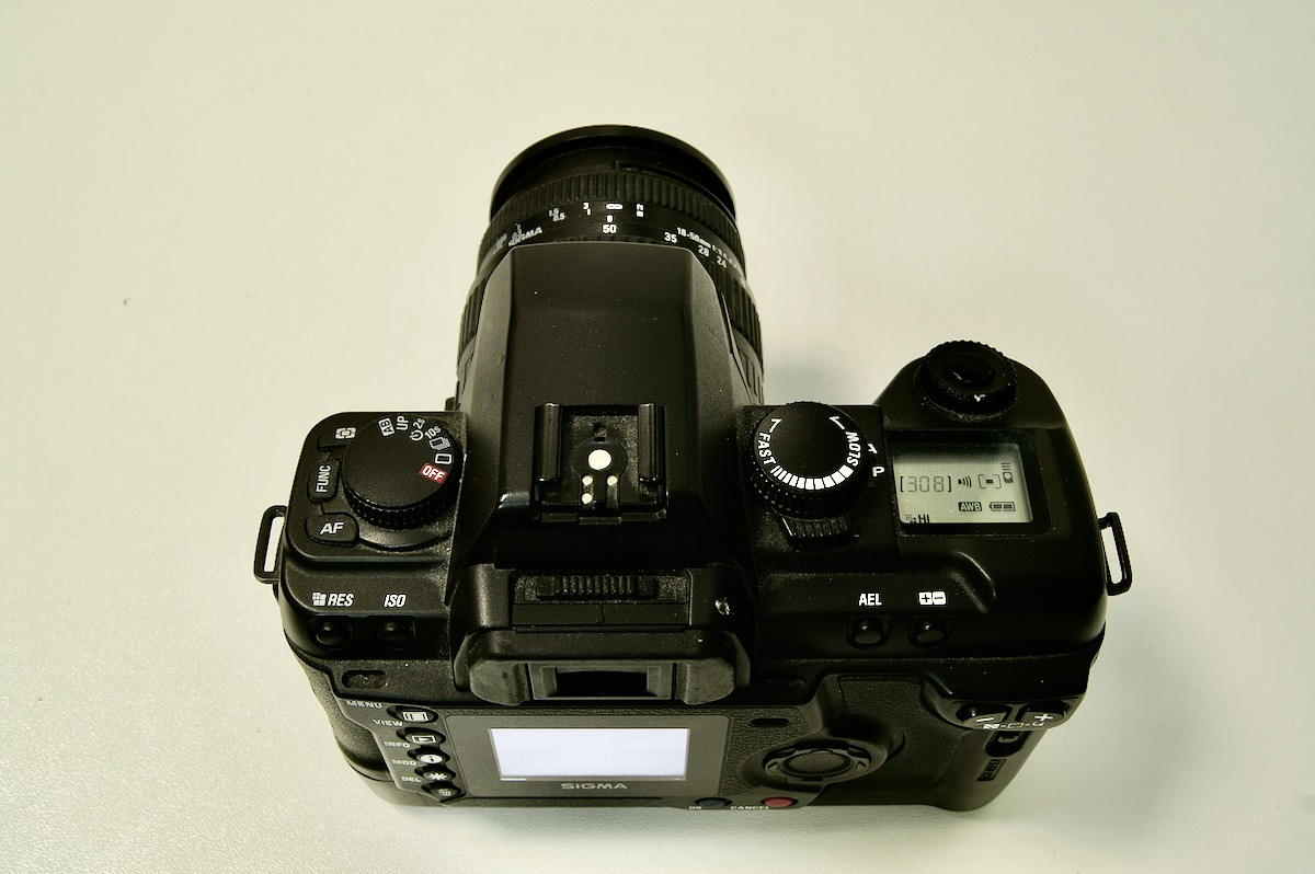 Die Herstellung: 2003 bis 2006 Speichermedium: CompactFlashTM (CF) (Typ I/II), IBM MicrodriveTM Bildsensormaße: 20.7x13.8mm Objektivanschluss: SIGMA SA Bajonett Bildwinkel: Entsprechend ca. 1,7x der Objektivbrennweite (für Kleinbildkameras) Bildsensor: Foveon-Sensor APS-C 20,7 x 13,8 mm (Cropfaktor 1,7) 3,5 Megapixel (physikalisch) und 10,3 Megapixel (effektiv) (2,268 Spalten x 1,512 Reihen x 3 Schichten) Bildaufzeichnungsformat: Verlustfreie Datenkomprimierung RAW (12-bit) Dateigröße: HI: 2.268 x 1.512 x 3 (ca.8MB) , MED: 1.512 x 1.008 x 3 (ca.4MB) , LOW: 1.134 x 756 x 3 (ca.2MB) Reihenaufnahmegeschwindigkeit: Hi: 1,9 Bilder/Sekunde, MED: 2,4 Bilder/Sekunde, LOW: 2,5 Bilder/Sekunde Maximale Anzahl für Reihenaufnahmen: HI: 6 Aufnahmen, MED: 14 Aufnahmen, LOW: 30 Aufnahmen Schnittstellen: IEEE1394, USB (1.1), Video Ausgang (NTSC/PAL) Weißabgleich: 8 Typen (Auto, Sonne, Wolken, Schatten, Neonlicht, Glühlampe, Blitz, Benutzerdefiniert) Sucher Fester: Reflexsucher mit Spiegelprisma Sucherbereich: 97 % vertikal, 98 % horizontal Suchervergrößerung: 0.77x (für 50-mm-Objektiv 1:1,4 und Einstellung auf ) Dioptrieneinstellbereich: -3dpt — +1dpt Autofokus: TTL-Phasendifferenz-Detektion Autofokus-Arbeitsbereich: LW 2-18 (ISO 100) Autofokusbetriebsarten: AF-S (Schärfepriorität), AF-C (Schärfenachführung), AF-C-Modus mit Prädiktions-Funktion bei der Aufnahme von Objekten, die sich bewegen Messverfahren: Mehrfeldmessung in 8 Segmenten, mittenbetonte Messung und mittenbetonte Integralmessung Messbereich: LW 1 bis 20 (für 50-mm-Objektiv 1:1,4 bei ISO 100) Belichtungsbetriebsarten: Programmautomatik (Programmbeeinflussung möglich) (P), Blendenautomatik (S), Zeitautomatik (A), Manuell (M) ISO-Empfindlichkeit: Entsprechend ISO 100, 200, 400, 800, 1600 Belichtungskorrektur: ±3 LW (in Halbstufen) Bracketing: Drei aufeinanderfolgende Aufnahmen mit gemessener Belichtung, knapper Belichtung und reichlicher Belichtung Verschluss: Vertikal ablaufender Schlitzverschluss mit elektronisch kontrollierten Zeiten Verschlusszeiten: 1/6.000 Sek. bis 15 Sek., B (bis zu 15 Sekunden) (ISO 100), 1/6000 Sek. bis 1 Sek. (ISO 200,400) Externe Blitzsynchronisierung: Sucherschuh mit Zündkontakt sowie Steuerkontakten für speziell abgestimmte Blitzgeräte; X-Synchronisation auf 1/180 Sek oder länger LCD Monitor: 4.5 cm, Niedertemperatur-Polysilizium-TFT-Farb-LCD, ca. 130,000 Pixel, Bildbereich 100 %, weiße LED-Hintergrundbeleuchtung Bildbetrachtung: Einzelbildanzeige, Ausschnittvergrößerung, 9-in-1-Bild, Dia-Show Menüsprachen: Deutsch / Englisch / Französisch / Japanisch Energieversorgung: Zwei 3-V-Lithiumzellen (CR123A), Zwei 3-V-Lithiumzellen (CR-V3) oder vier Alkali-, NiMh-oder NiCd-Mignonzellen, Netzadapter Abmessungen: 152 x 120 x 79 mm Gewicht: 805 g (betriebsbereit)