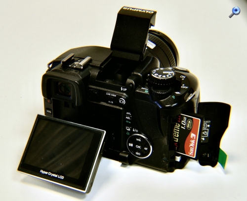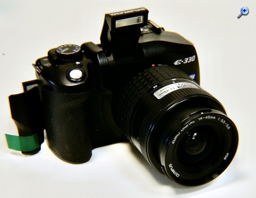Hersteller, Modell: Olympus E-330 Baujahr: 2006 Objektiv: Standardzoom Zuiko Digital 14-45 mm 1:3,5-5,6 Sensor: Four/Thirds. 7,9 MPix Display: Farb-Display Sucher: Optischer-elektronischer Sucher Verschluss: bis 1/4000 Sek. ASA: 100-1600 Blitz: Eingebaut, ausklappbar Speicher: Compact flach I und 2, auch Microdrive Stromversorgung: BLM-1, Lithiumionenakku (7,2 V, 1.500 mAh) Abmessungen: Gewicht: 550 Gr