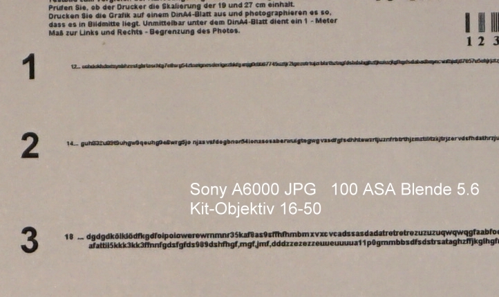 Es wurde (wie bei allen meinen Tests) ein stabiles Stativ, Zeitauslöser, Blendenwahl verwendet. Kamera Sony A6000 (24 Mpix, APS-C).