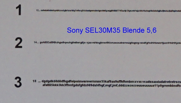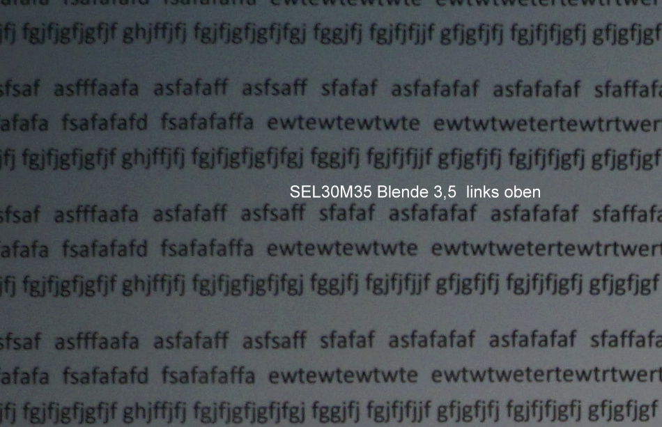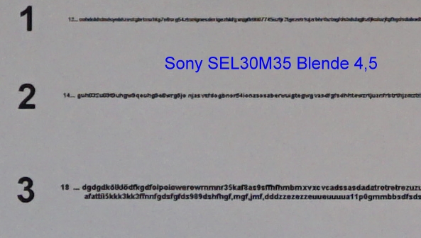 Ich habe zuerst die Mittenschärfe bei verschiedenen Blende (3,5 offen / 4,5 / 5,6 ) getestet.