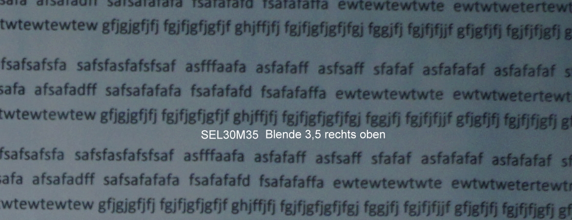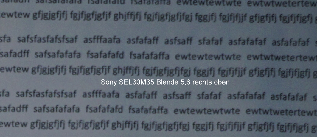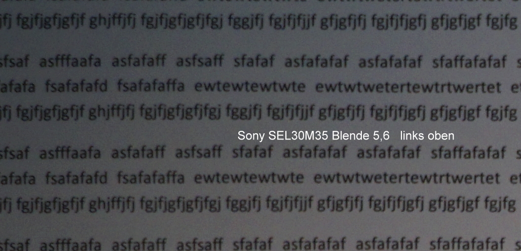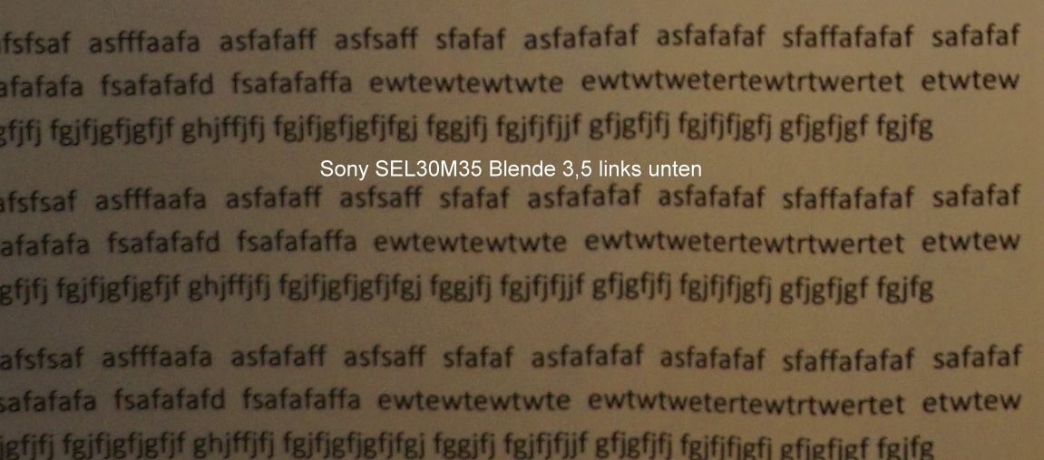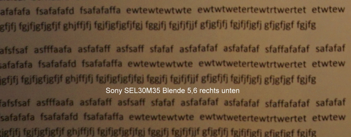 Auch dieses SEL30M35 reiht sich (aus meiner Sicht bezogen auf die bei mir vorhandenen Sony-e-mount-Objektive: SELP1650, SEL1855, SEL30M35) in die Familie der etwas "Einen-Hauch-Randunscharfen" ein, wobei die Mittenschärfe wohl immer sehr gut ist. Unterstellung? Nein, glaube ich nicht. Ich belege das mit meinen Testfotos, in Kenntnis, das der Vergleich Festbrennweite / Zoom nur bedingt möglich ist, aber das Sigma und das Sony Makro sin beides Festbrennweiten: