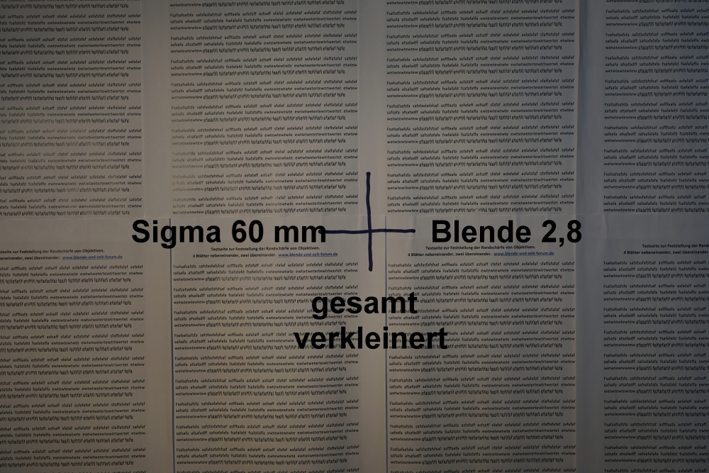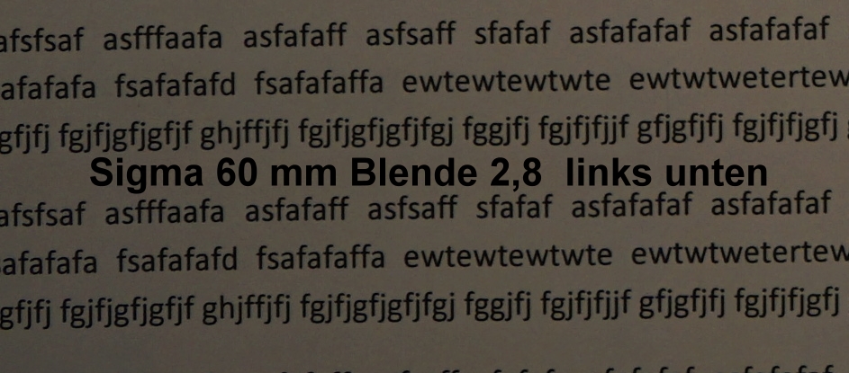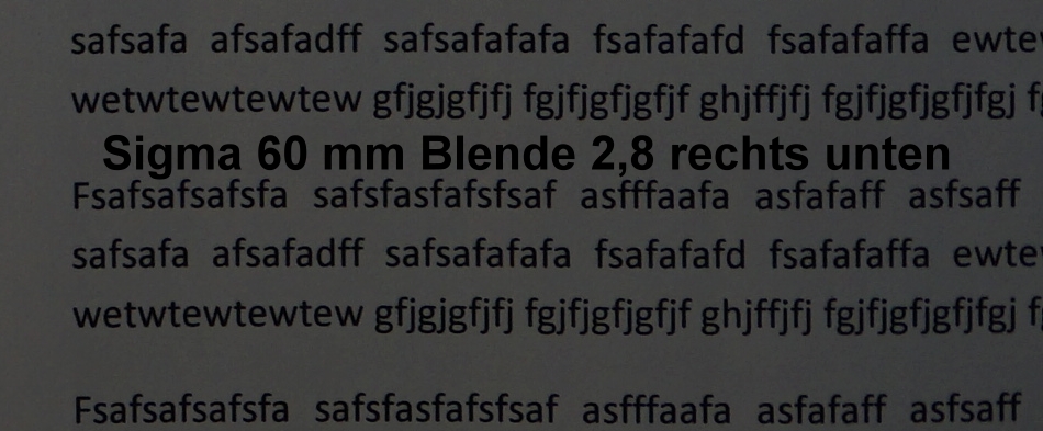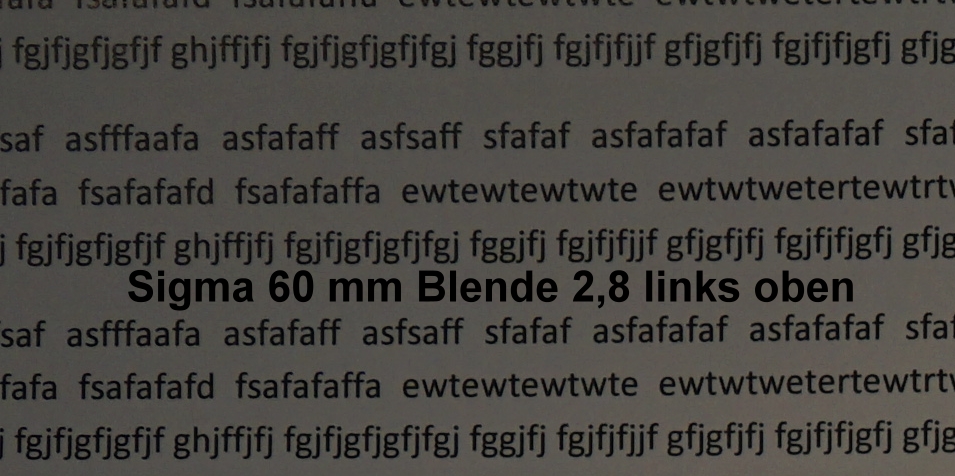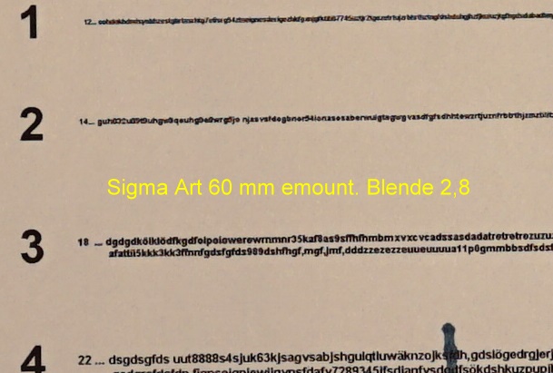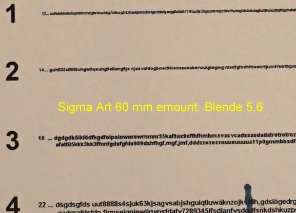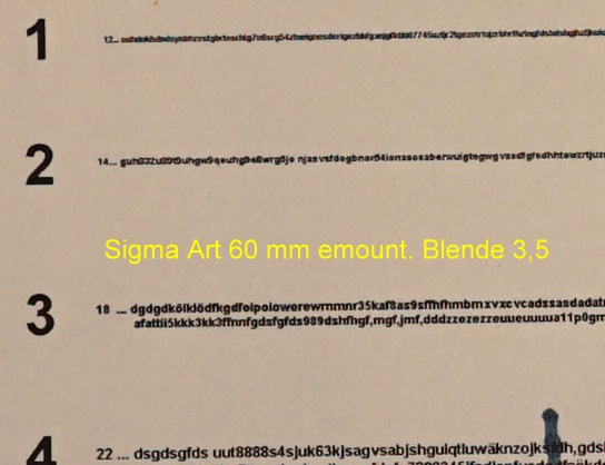 hier nun der Test der Mittenschärfe des Sigma Art 60 mm / 2,8 emount für Sony: