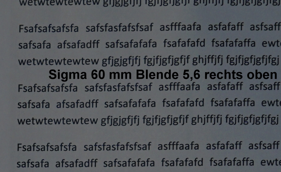 Ich habe zwar ein Kit-Zoom, der von 16-50 mm reicht und ein Kit 18-55 mm, aber deren Eckenschärfe suboptimal ist. Weiter kann mein Sony-Zoom SEL55210 auch 60 mm, dieses Zoom werde ich auch noch mit dem Sigma 60 mm vergleichen, folgt später.