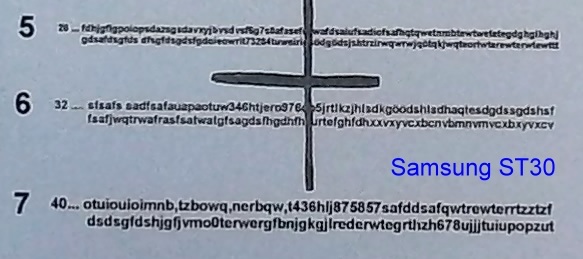 Ein 24 MP Chip kann, eine gute Optik vorausgesetzt, dagegen noch Buchstaben auflösen, die 0,5 mm breit sind. Während das vielbelächelte Kitobjektiv 18-55 mm bei mir noch die maximale Auflösung darstellt, war bei einem alten 28 mm Objektiv von Revue bei Größe 6 schon das Ende der Fahnenstange. Aufgenommen habe ich bei ISO 200 mit Kunstlicht (6700° K) und Blende 11 (Mode Av) mit Stativ und Fernauslöser.