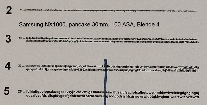 Deshalb jetzt noch ein Testphoto, dass sogar noch einen Hauch mehr Detailschärfe bei Schrift 3 bringt: