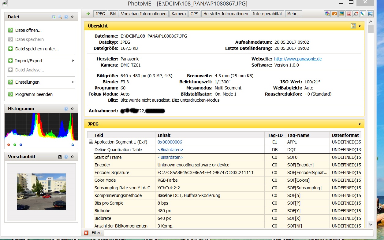 Heute habe ich die Funktion GPS getestet. Alle GPS Infos werden von der Kamera geladen und gespeichert (Alle 60 der 15 Sekunden)