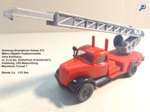 Die Aufnahme mit dem Smartphone Galaxy A72 musste Schlußlicht werden, da die Bildauflösung nur 5 MPix hat und kein Autofokus und keine Abblend-Option, es wurde mit Blende 2,8 aufgenommen.