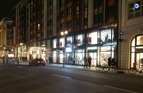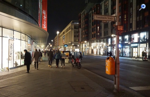 nach dem Besuch einer Veranstaltung (bei der die Sony A6000 und das SEL18135 Zoom-Objektiv dabei war) lief ich durch die Umgebung der Friedrichstr. und des Gendarmenmarktes durch die kalte Berliner City. Mir fiel auf, dass die Strassenbeleuchtung eigentlich relativ dunkel war - irgendwie wie gedimmt - und dachte mir: Könnte die A6000 (sie stand auf Modus P mit der Erlaubnis, bis zu 25600 ASA zu arbeiten, brauchbre Ergebnisse liefern?
