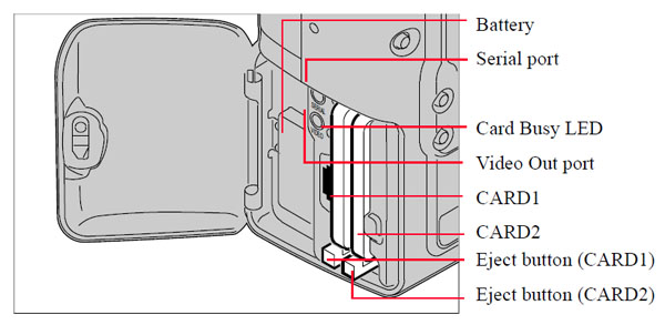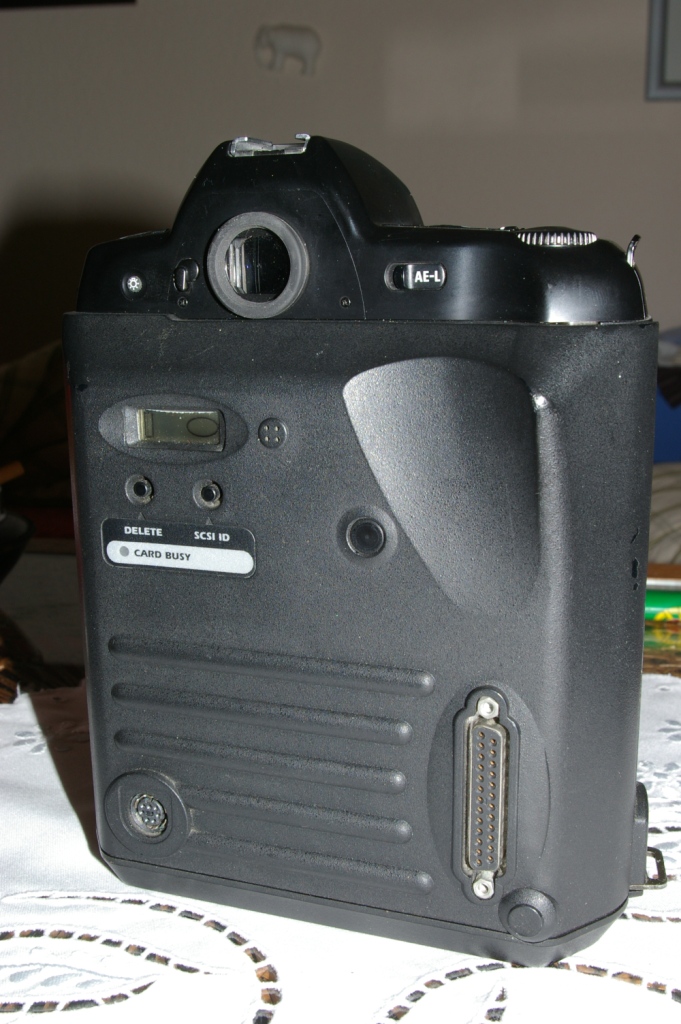 Für diese Sensorgröße gab es, soviel ich weiß, keine eigene Bezeichnung. Im voluminösen "Podest" der Nikon F5 ist der riesige Akku (ca. 2,5 x 4 x 11 cm) und die beiden PC Speicherkarten untergebracht, dann gibts da noch einen Hochformat-Auslöser und die diversen Stecker für die Anschlusskabel. Alles ordentlich "heavy" gegenüber den heutigen Digicams.