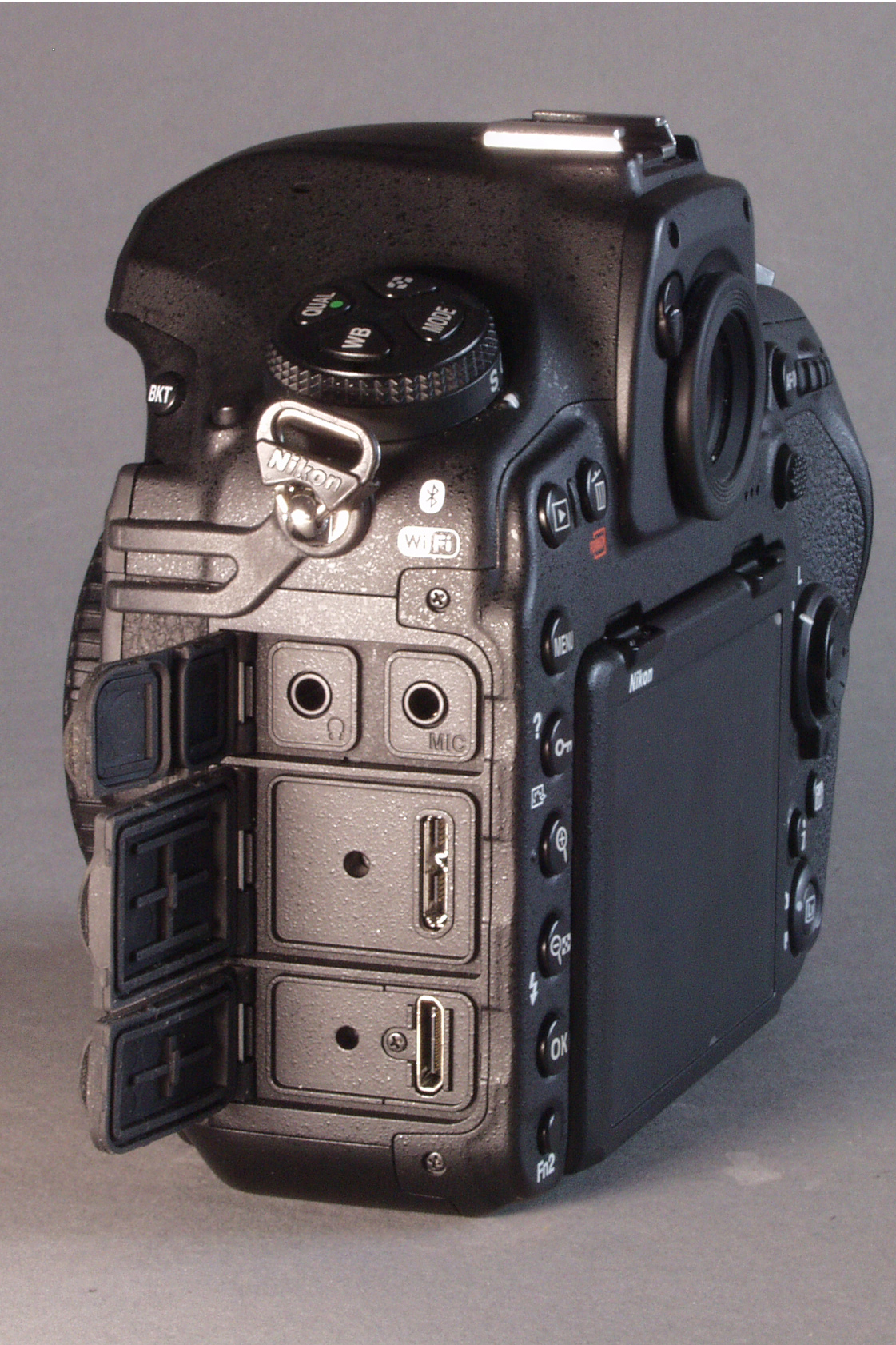 Sensorgröße 24x36 mm mit 46,6 (45,7 effektiv) Megapixeln (FX) Fotoauflösung 8.256 x 5.504 Pixel (3:2) (max.) Dateiformate: RAW, TIF, Jpeg Farbtiefe: max. 42 Bit (14 Bit pro Farbkanal) Videoformate: 4k , Full HD max. 3840x2160 pixel 30p, Zeitlupe mit 120p in Full HD Blitz: kein eingebauter Blitz nur Blitzschuh f. Nikon i-TTL Display: 3,2" (8,0 cm) TFT LCD Monitor mit 2.359.000 Bildpunkten, entspiegelt, Helligkeit einstellbar, Farbe einstellbar, neigbar um 130° nach oben und 80° nach unten, mit Touchscreen zusätzliches Infodisplay (oben) mit Beleuchtung Zeiten: B, 30s - 1/8000s Blitzsynchronzeit 1/250 oder HighSpeed Eingänge: USB 3.1, AUX (micro), Anschluß für Fernauslöser/Timer, 1 Ausgänge: HDMI (Video nativ) , Kopfhörer, USB 3.1 Akku: EN-EL15a bis EL-EN15c , EN-EL19 in Powerhandgriff Drahtlosverbg. Bluetooth, W-Lan Speicherkarten: 1x SDHC/SDXC (UHS I, UHS II) , 1x XQD Besonderheiten: lautlose Auslösung im Live-View Modus, Wasserwaage im Sucher schaltbar, Serienbilder bis 11Bilder/s mit Akku EN-EL18 im Powerhandgriff HDR-Bild und Focusstacking-Funktion