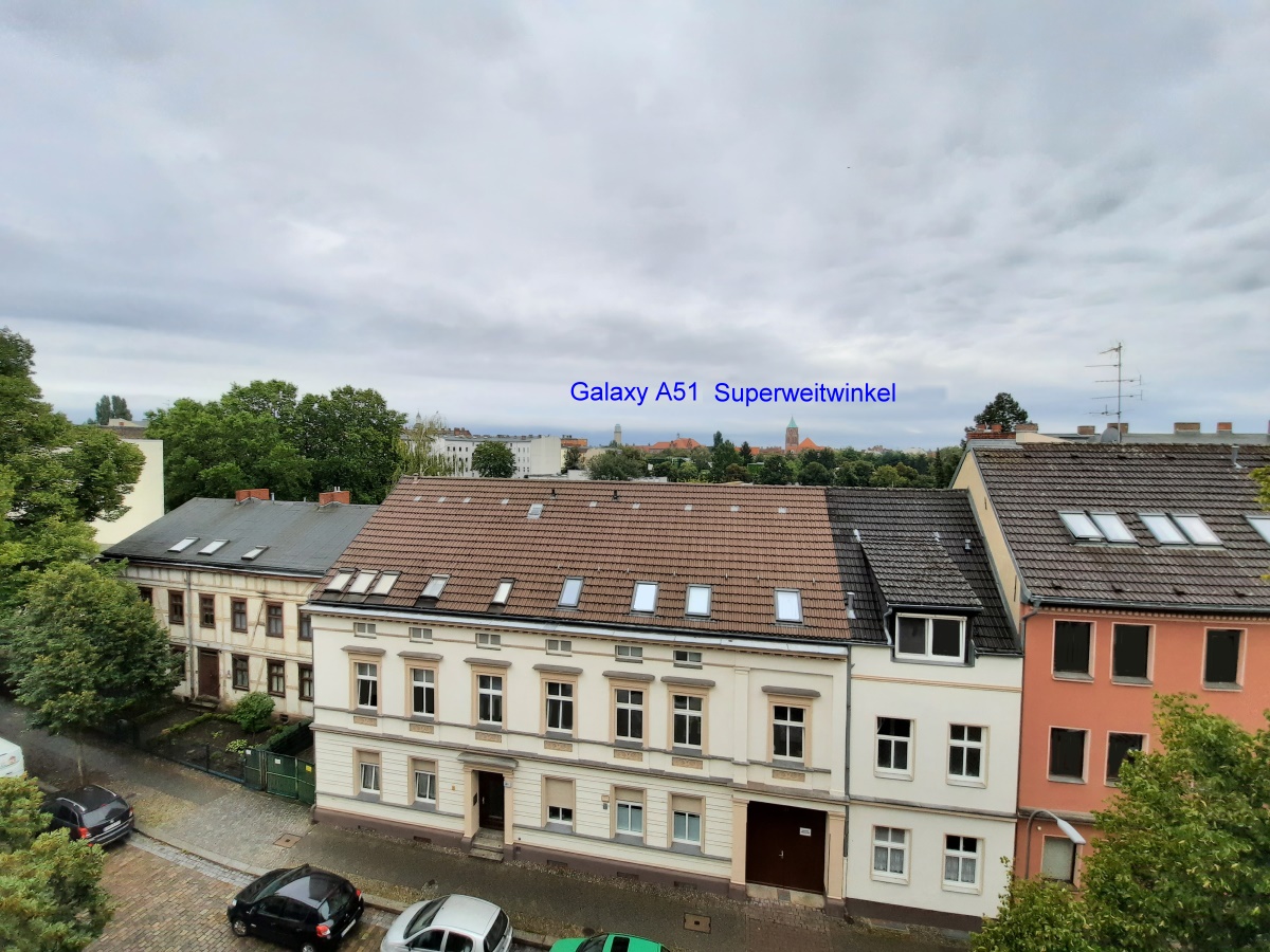 die folgenden drei Fotos zeigen den Bildwinkelvergleich zwischen Weitwinkel und Superweitwinkel, sowie eine Aufnahme mit der Live-Fokus (Bokeh) - Funktion der Kameras des Samsung Galaxy A51 Smartphones.