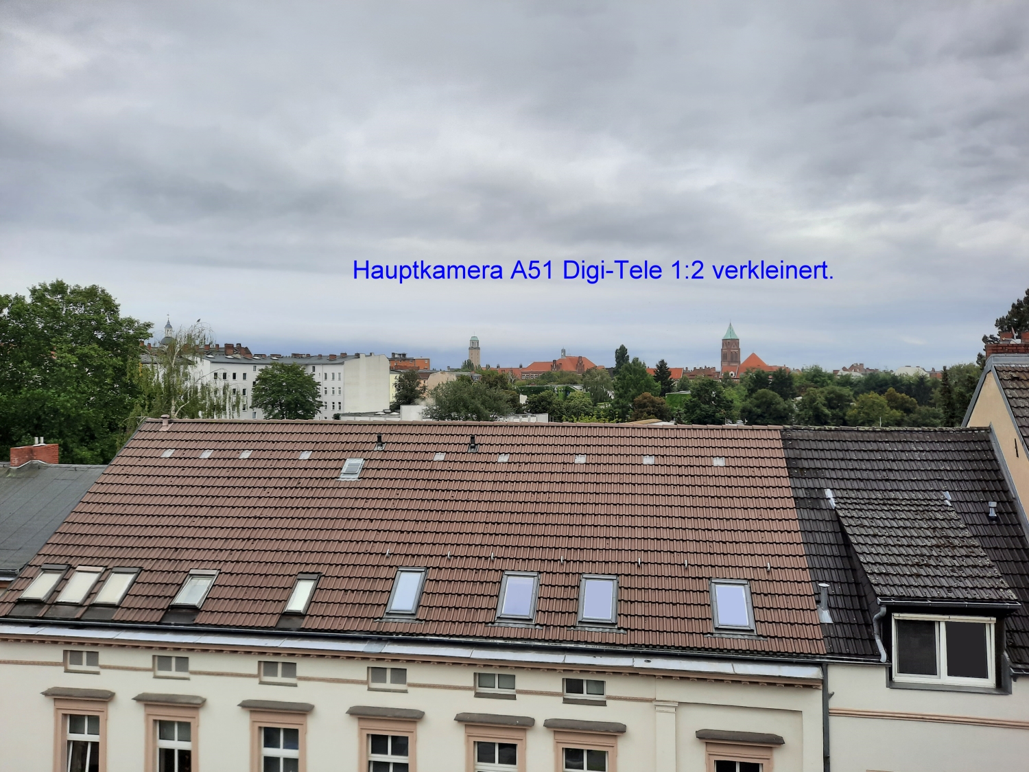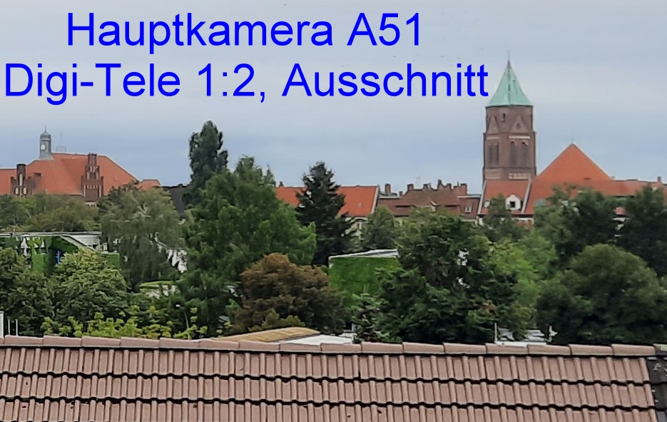 gute Idee. Ich habe gerade 2 Fotos des selben Motivs mit der Samsung Galaxy A51- Hauptkamera aufgenommen. Das erste ohne Digi-Tele, das zweite mit Digi-Tele 1:2.