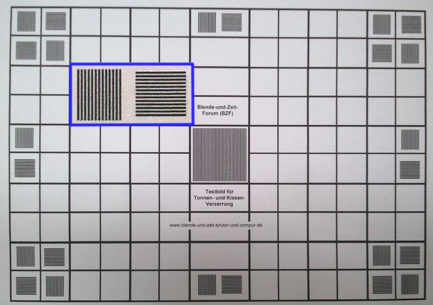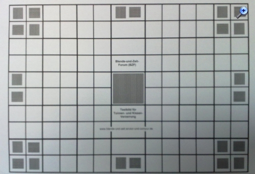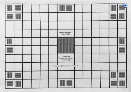 Hier der Verkrümmungs- und Schärfetest des Nokia 6220 Photohandys: Nur wenig Verkrümmung, Schärfe bis zum Rand - man kann sich nur wundern, was das winzige Objektiv leistet. (Das Originalbild ist auf die Hälfte verkleinert) Da steht zu recht Zeiss Tessar drauf. Die Aufnahmeentfernung war ca. 35 cm.