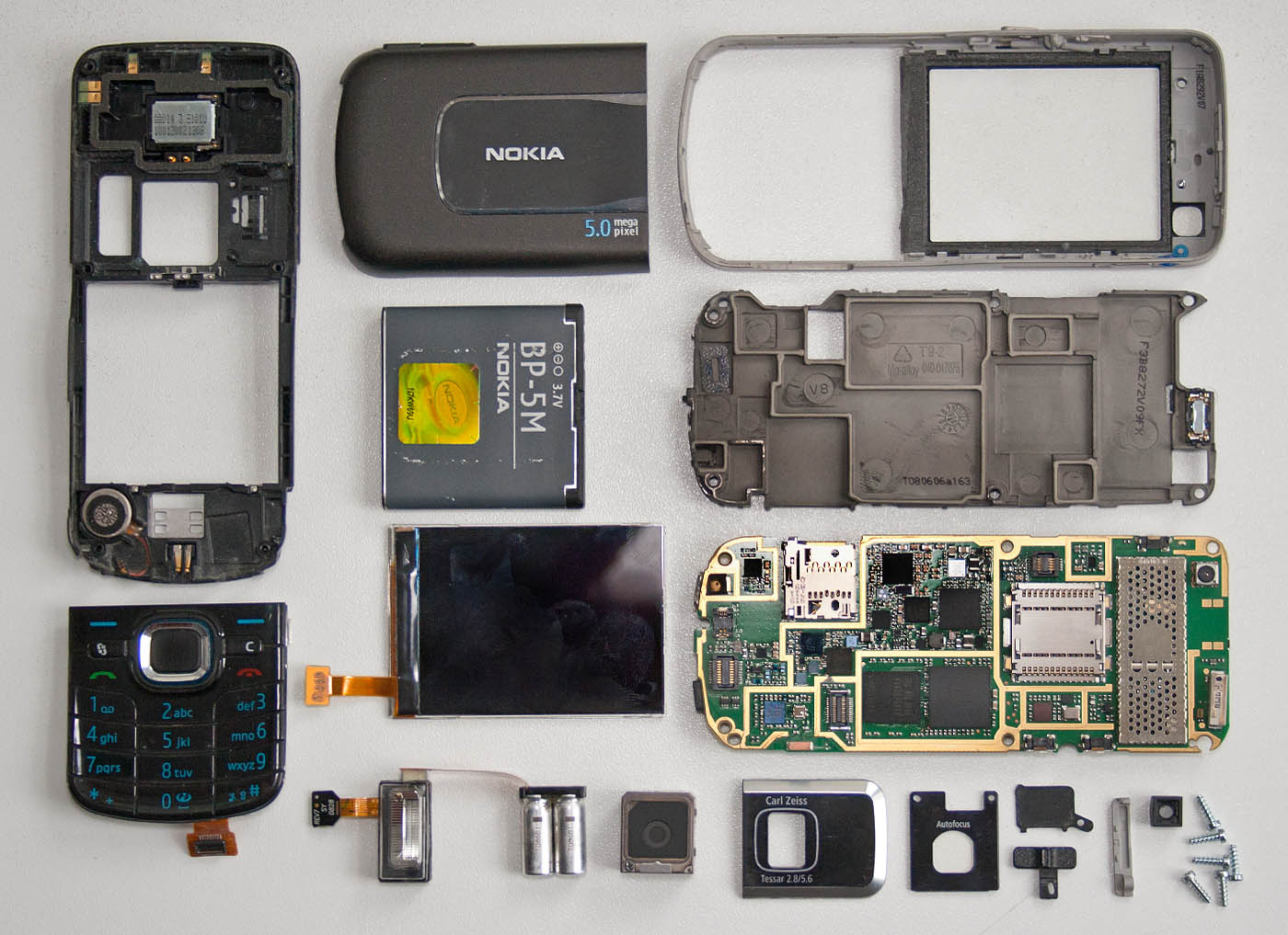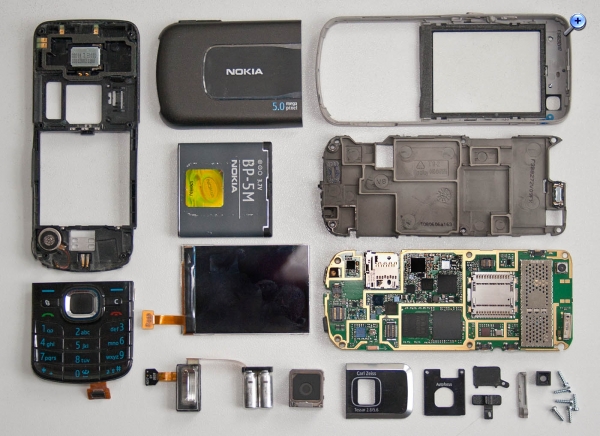 Nach dem Ableben des Nokia 6220C wegen Akkuschwäche und Displayschaden (breite vertikale schwarze Streifen) stand der Erforschung der photographischen Innereien nichts mehr im Weg.