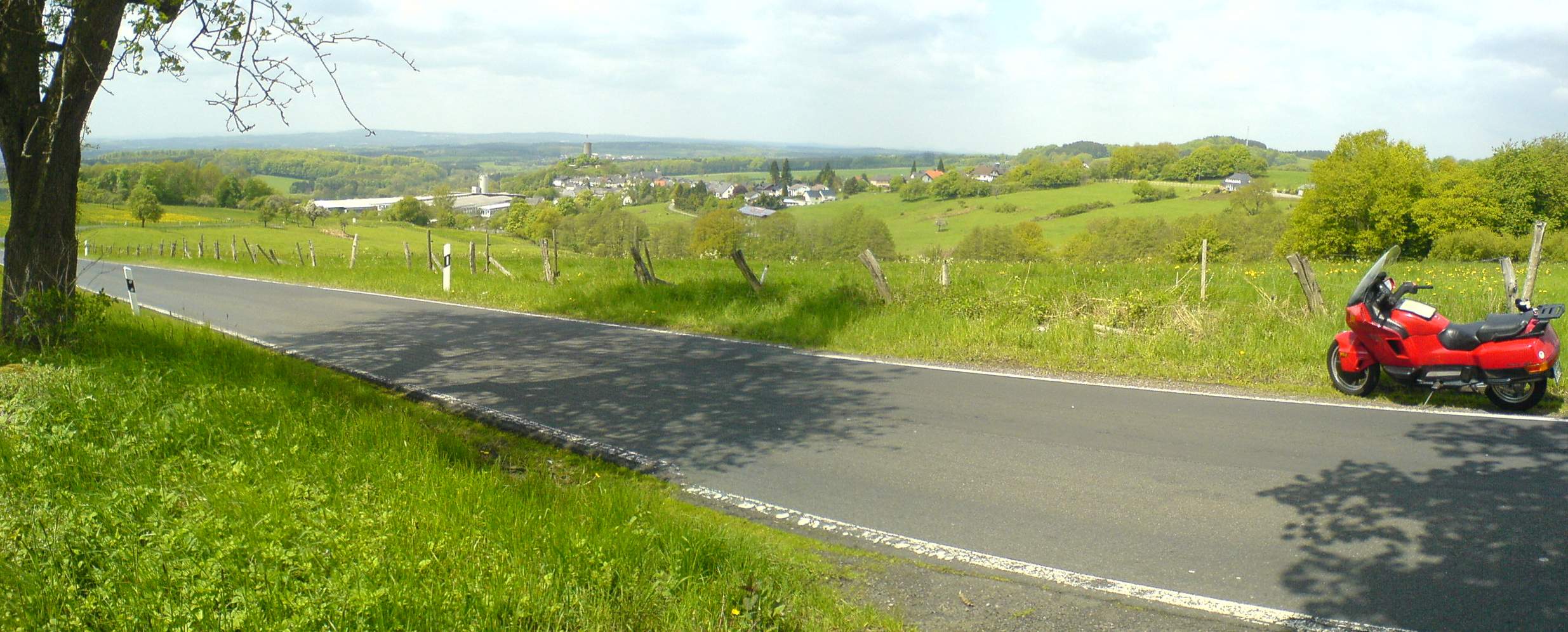 Dieses Foto habe ich gewerblich verwendet. Ich hatte für diesen Kunden nie an ein Bild von der hässlichen Durchgangsstraße aus gedacht, aber das Wetter, die Jahreszeit, die Vegetation, die Farben stimmten und eine DSLR oder wenigstens eine gehobene Kompaktkamera (ich fotografierte damals mit der Olymus C-5050Z und der Canon G5) hatte ich nicht dabei. Bild minimal geradegestellt und stürzende Linien entzerrt, die Farben und Tonwerte sind out-of-camera.