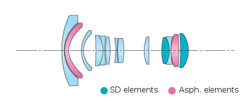 Optischer Aufbau: 13 Linsen in 11 Gruppen
