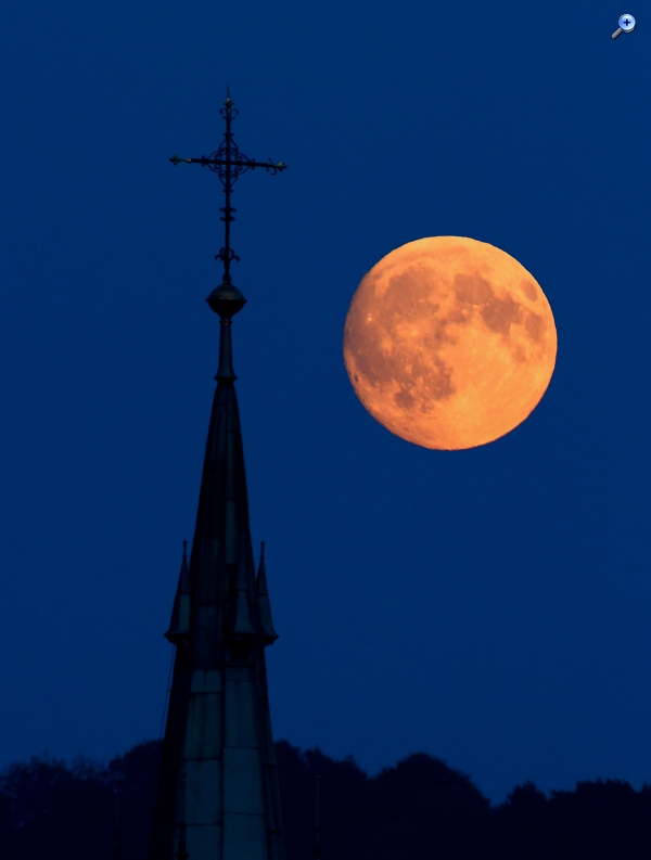 EOS 7D mit Tamron SP 1:2,8 / 70-200 mm (200 mm) plus Konverter im AF Modus (auf den Mond fokussiert) F=8 (4), 1/50 sek. ISO 400