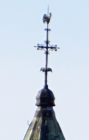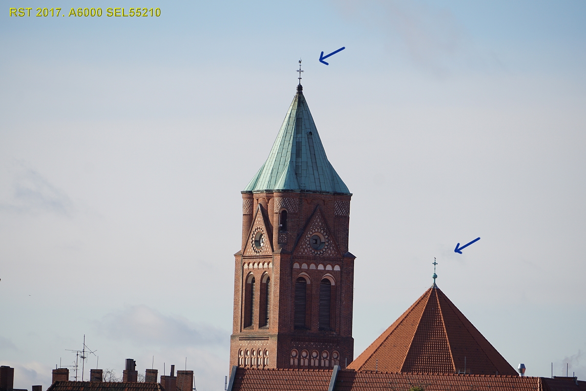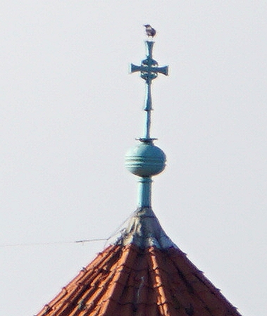Die Elster habe ich beim Aufnehmen garnicht mitbekommen. Übrigens unten links geht die Amateurfunk-Kurzwellenantenne der Clubstation der Kirchen nach links weg.
