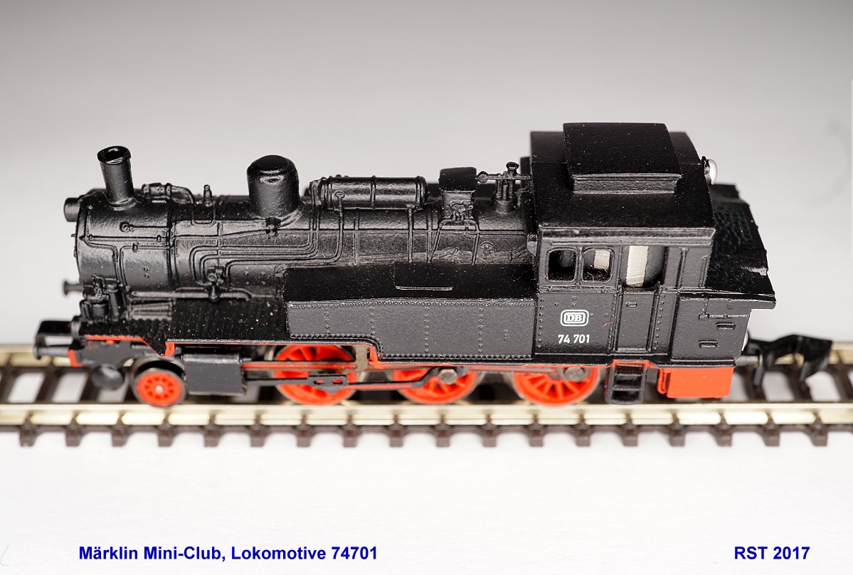 Die Kamera Sony A6000 stand auf 200 ASA und Blende 16. Der Schärfepunkt lag auf der oberern Vorderseite des Wassertanks der Lokomotive (einer Märklin Mini-Club 74701). Diese Lok hat über die Kupplungen eine Länge von 6,3 cm. So kamen die Räder schon leicht in den Unschärfebereich. Ich habe drei Aufnahmen mit unterschiedlichen Schärfepunkten gemacht, diese hier gefiel mir als Kompromiß am besten.