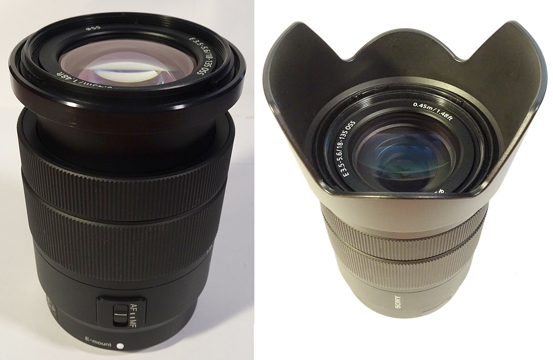 Ich habe mich dann für das SEL18135 entschieden. Es verfügt über einen Autofokus, der aber abschaltbar ist, dann wird mit dem Steuerring fokusiert. Die Brennweite (bezogen auf APS-C) von 18 - 135 mm, das bedeutet umgerechnet bei einem Krop-Faktor von 1,5 immerhin 27-201,5 mm KB. Nahentfernung 0,45 Meter. 16 Linsen in 12 Gruppen. Minmalblende in Relation zur Brennweite 22-36.