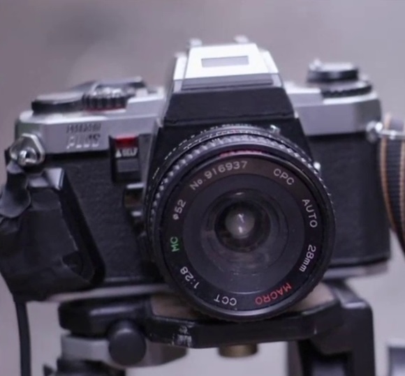 in "Stimme aus dem Grab" aus der amerikanischen Serie HOMICIDE HUNTER (Staffel 4, Folge 8, abrufbar u. a. in der Mediathek von SAT1 GOLD) taucht im Rahmen eines bizarren Selbstmordes eine oberflächlich "getarnte" Pentax Program Plus mit zusätzlichem Handgriff auf. Interessant auch, dass in einigen Einstellungen der in der Handlung genannte Auslöser mit Klebeband an der Kamera befestigt ist, aber in anderen Einstellungen fehlt.