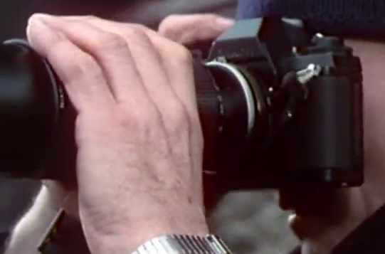 in der Folge 1 (Mein Name ist Stepanek) aus der 1987 erstmalig ausgestrahlten Serie "Hafendetektiv" ist eine sparsam "getarnte" Nikon F-301 zu sehen. In einigen Szenen wird auf die Tarnung komplett verzichtet und auch der originale Trageriemen ist zu sehen (auf den Standbildern leider nicht so deutlich zu erkennen).