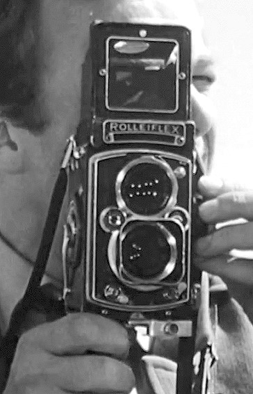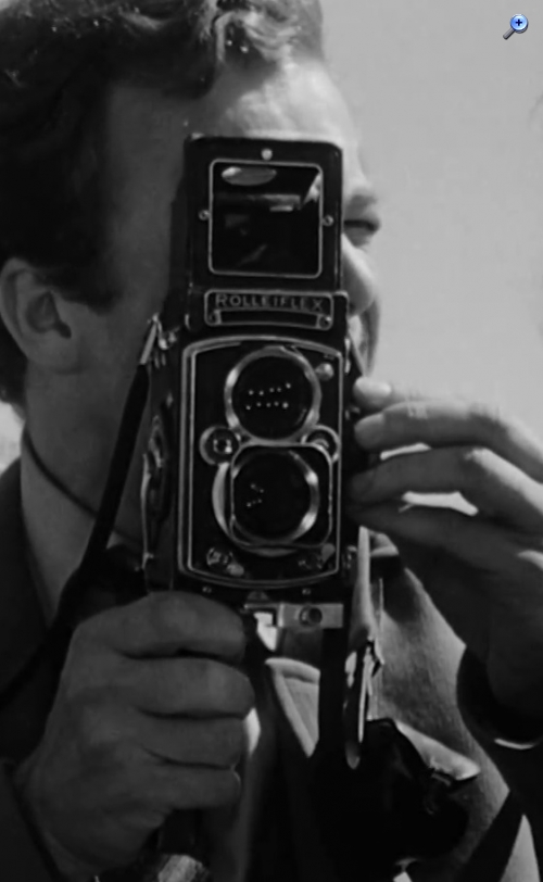 Ist schwer zu erkennen (außer man verwendet Zeitlupe), aber der junge Herr dreht am Fokus-Einstellknopf, während er durch den Sportrahmensucher schaut. Was ja irgendwie überhaupt keinen Sinn ergibt. Und nein, er schaut nicht durch die Sucherlinse unten sondern wirklich durch das quadratische Sucherfenster darüber. Solche Art "Fehlbedienung" sieht man in Filmen aber oft, wenn einem Schauspieler einfach eine Fotokamera in die Hand gedrückt wird .