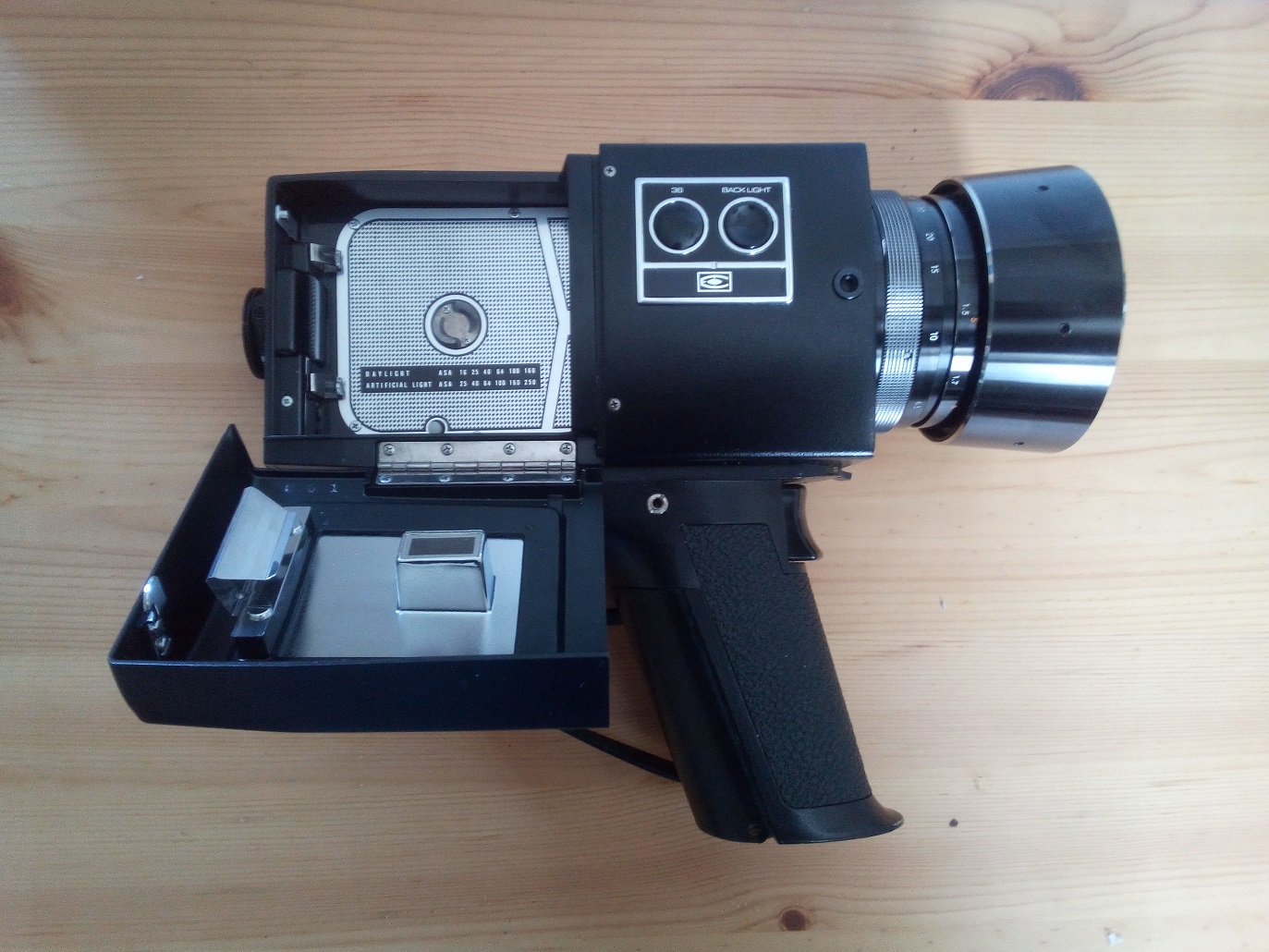 aus einem angekauften Konvolut stammt diese Super 8 Kamera (eine Weitere werde ich noch in den nächsten Tagen vorstellen). Leider lassen sich zu dieser Kamera im Netz keine Angaben finden. Google verweist auf ein ähnliches Modell oder die inzwischen gelöschte Verkaufsanzeige.
