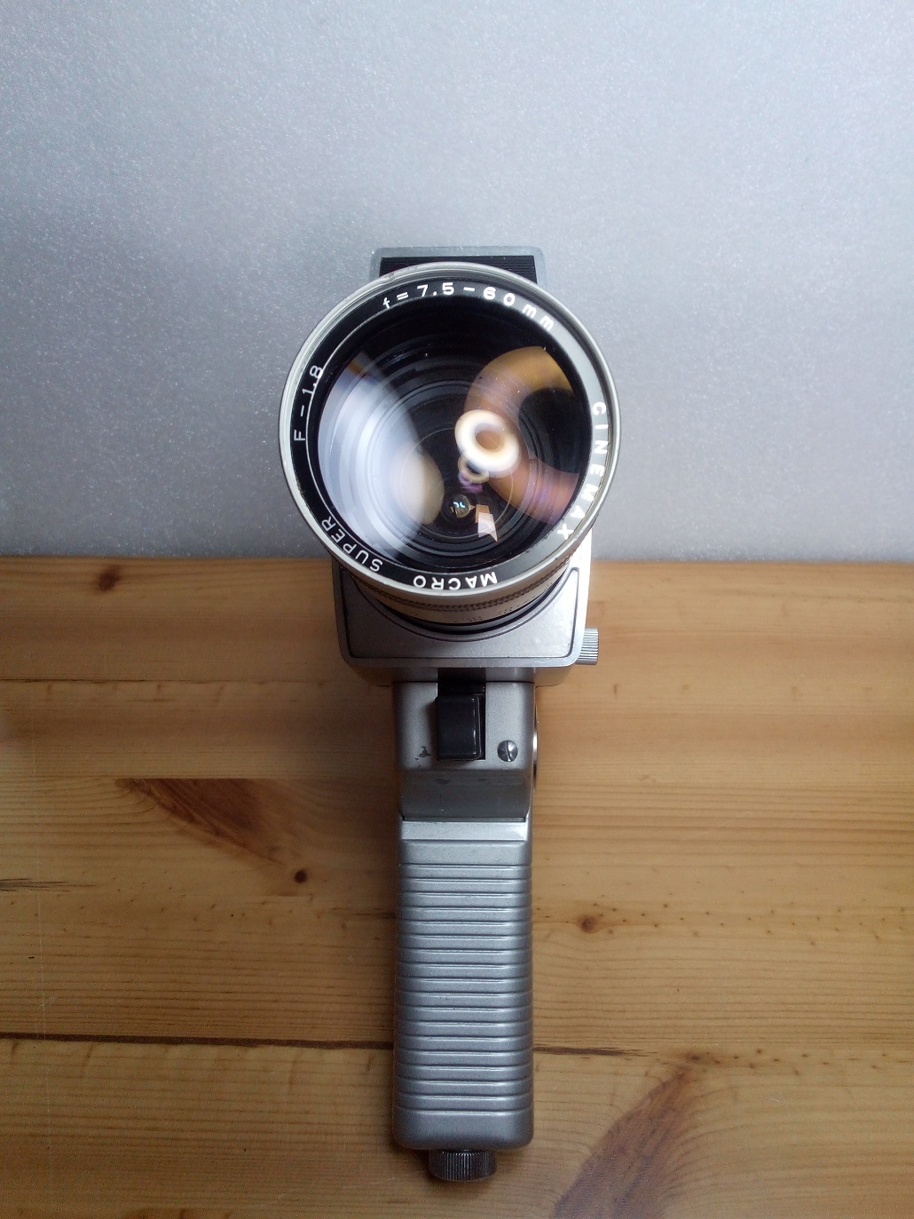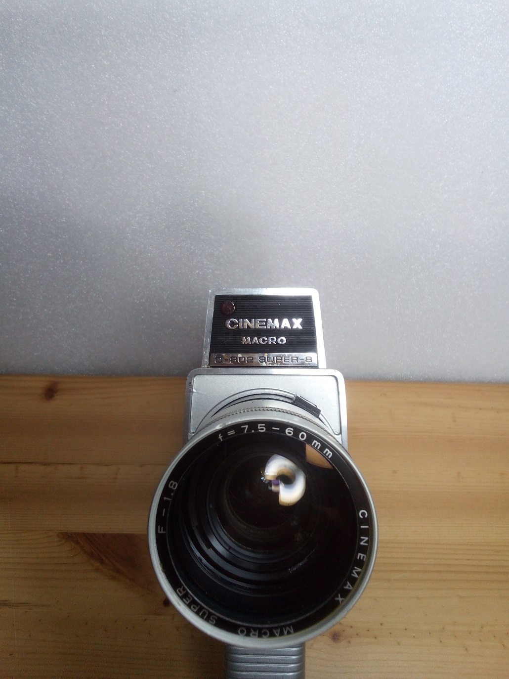 Hersteller: URIU Seiki Co. Ltd, Japan Modell: Cinemax Macro C-802 Super 8 Typ: Super 8 Stummfilmkamera Epoche: 1970-er Jahre Objektiv: 1,8 / 7,5 - 60mm, Motorzoom oder manuell Fokussierung: 1,2 m - unendlich, manuell, Macro-Einstellung Belichtung: Automatik oder manuell Sucher: Spiegelreflex mit Dioptrieausgleich