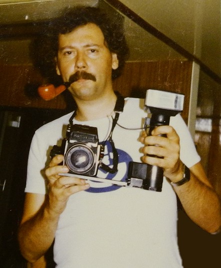 der Photograph ist ja zumeist nicht auf den eigenen Photos mit abgelichtet. Um den Photographen, der zur oben gezeigten Mamya 645J gehört, auch mal in der dazu passenden Zeit zu zeigen, hier ein Photo, dass 1984 auf einer Mondschein-Dampferfahrt auf dem Berliner Wannsee aufgenommen wurde.