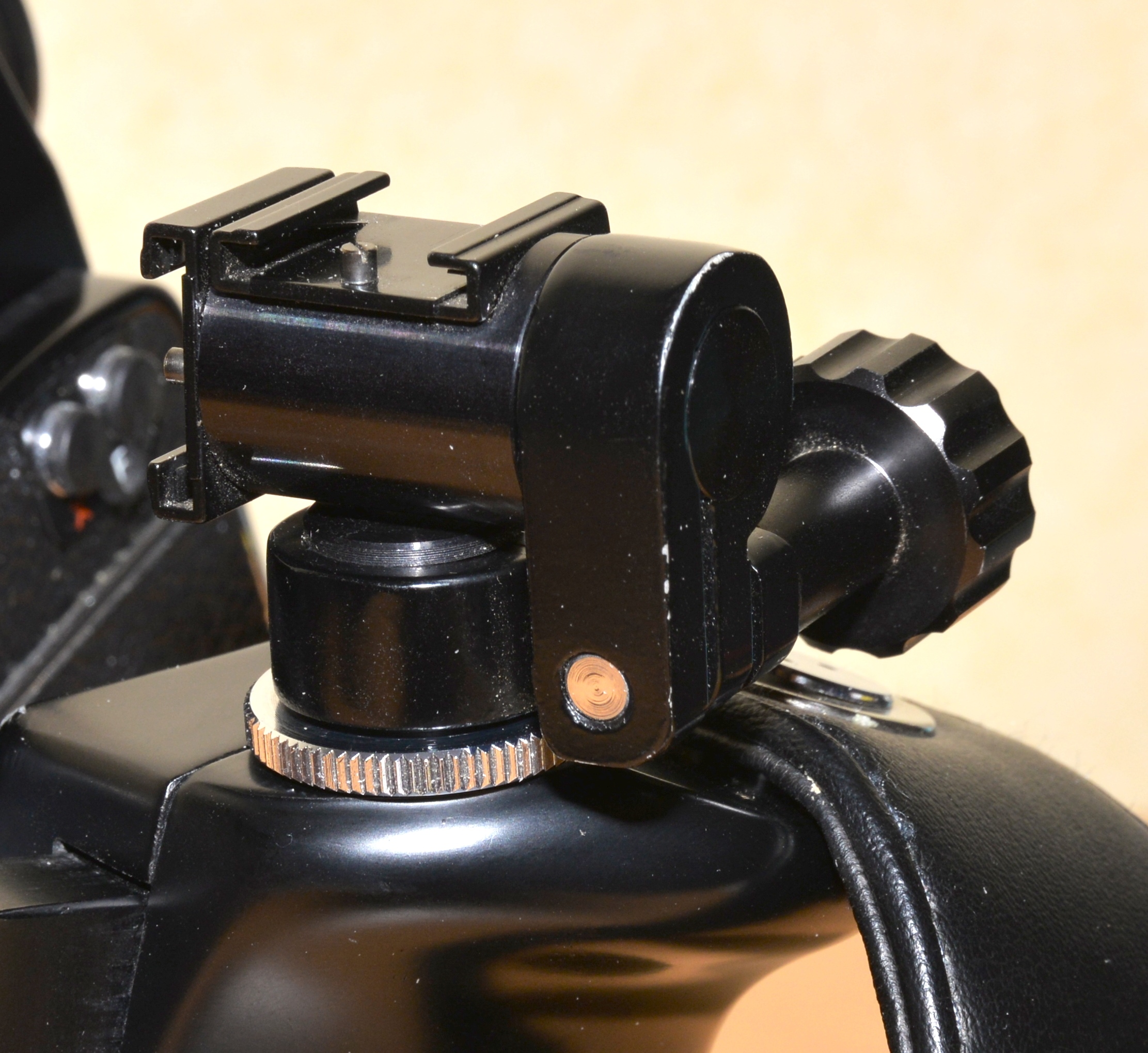"Er ist in die Hand geformt, der eingebaute Auslöser liegt genau am Zeigefinger, und in der breiten, verstellbaren Lederschlaufe ruht die Kamera so ruhig, daß man nicht nur lange Verschlußzeiten damit verwacklungsfrei riskieren, sondern auch mit den langen Brennweiten einwandfrei aus der Hand arbeiten kann."