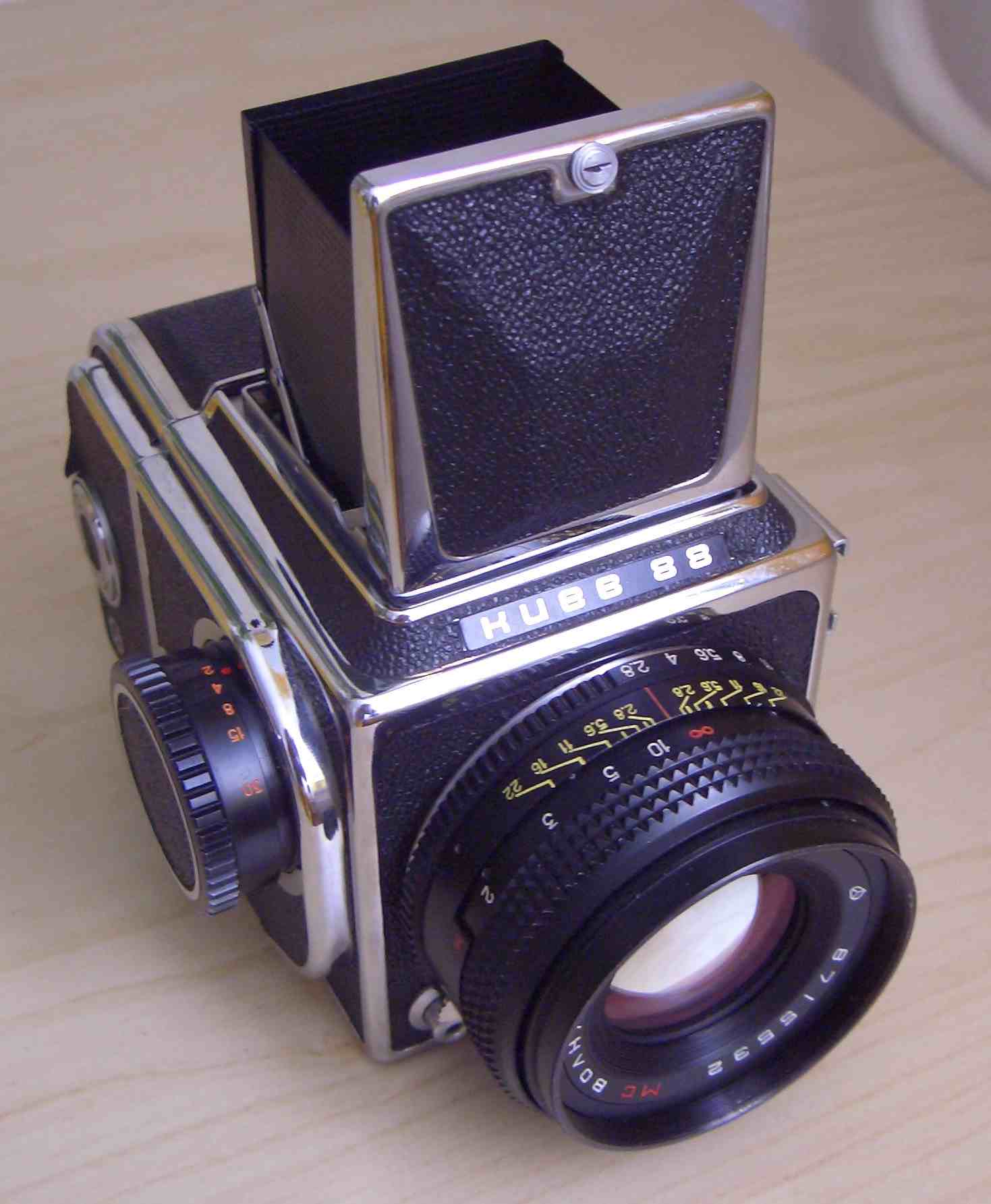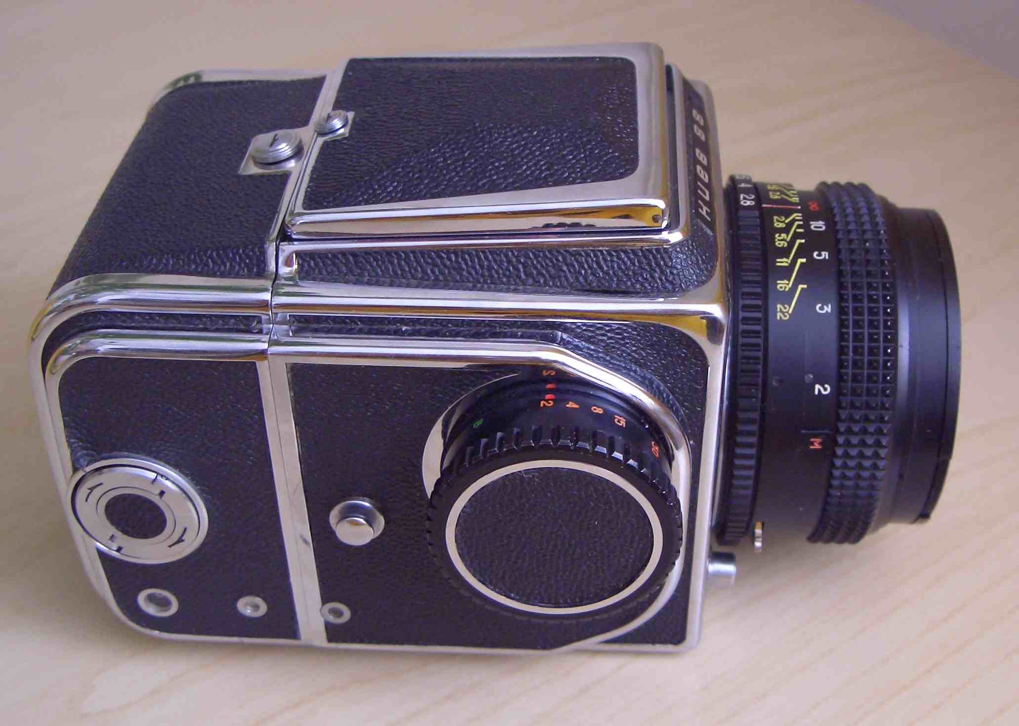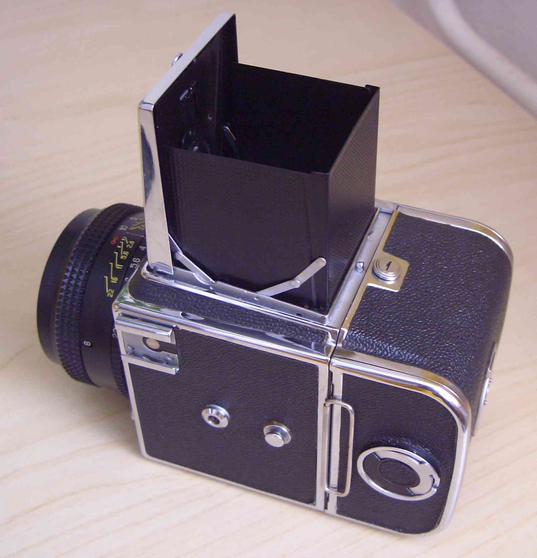 Hier ist meine neueste Kamera ,eine Kiev-88 ,die ich über ein Inserat mehr als günstig bekommen habe und als defekt angeboten wurde. Der optische zustand ist erste Sahne in echt sieht die aus wie neu.Nur eben hat diese das Problem mit dem auslösen naja. Das Objektiv läuft sauber und weich ohne Probleme und ist auch ohne Kratzer oder Mackel. Dazu gab es die Transporttasche,ein 2tes Filmmagazon und noch Filter. Also diese Kamera wird sicher lange bei mir bleiben.
