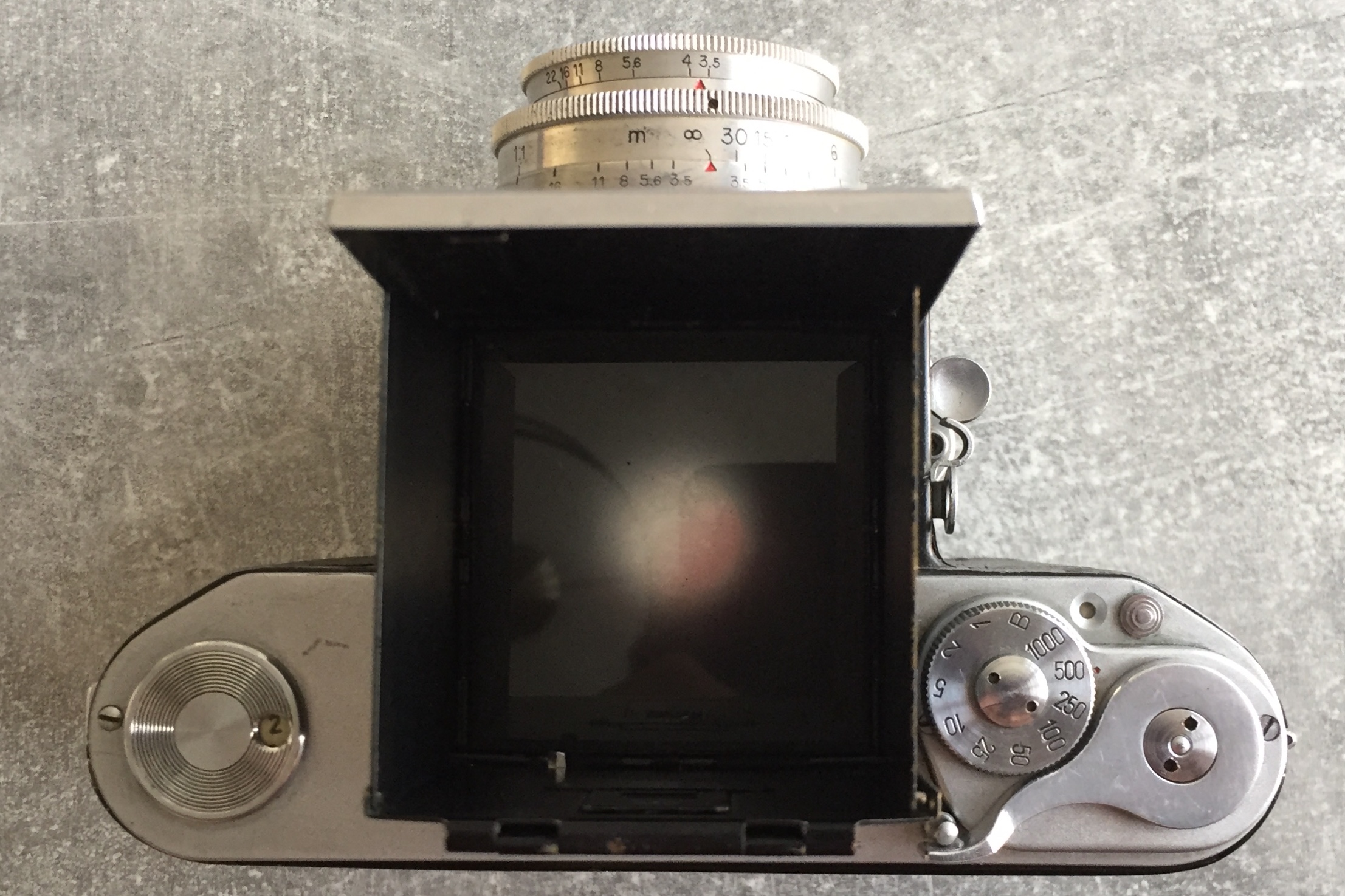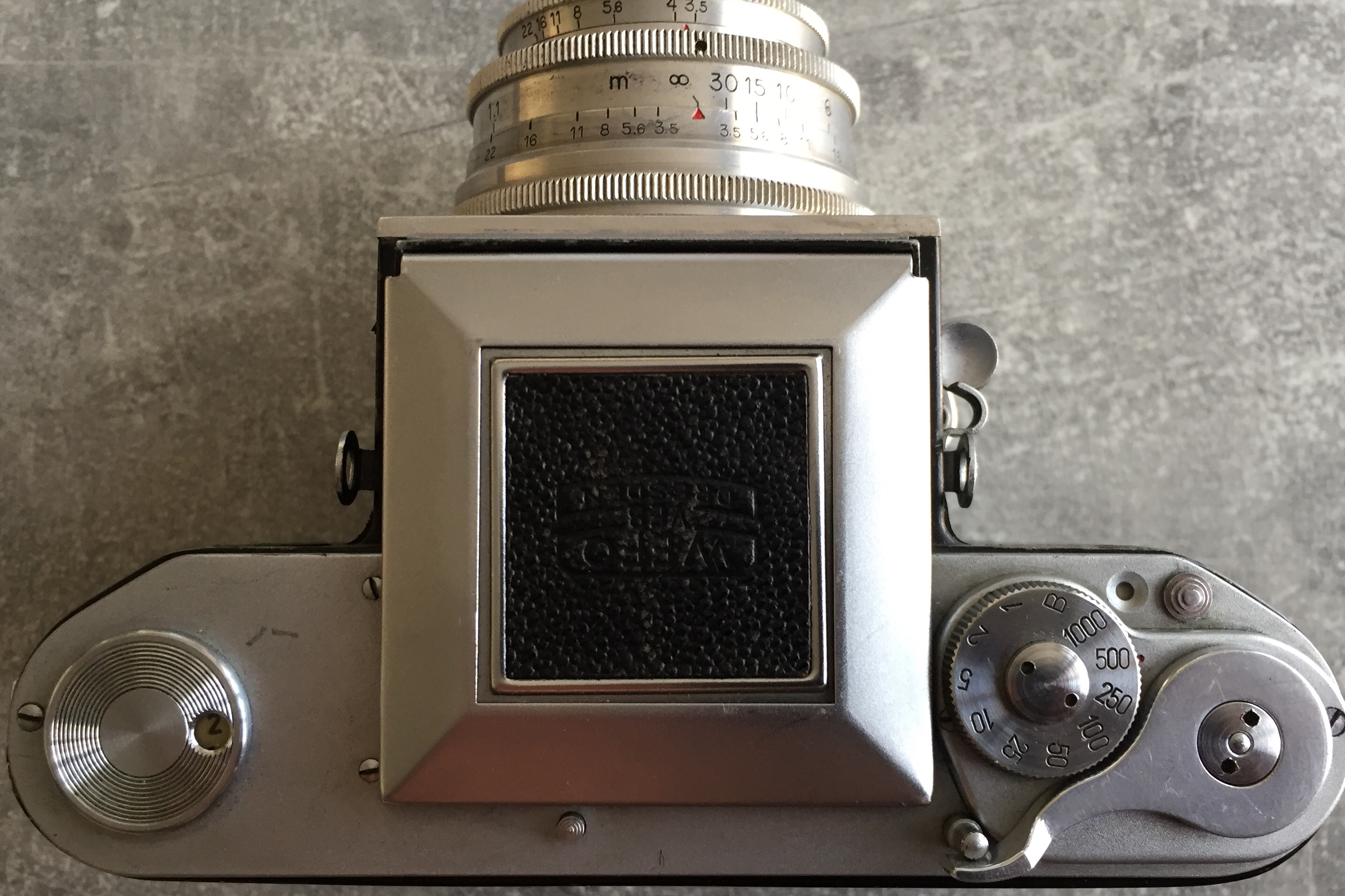 bin vor einiger Zeit zu einer Meister-Korelle gekommen Die ich auch gleich in meinen Urlaub auf Fuerteventura mitnehmen musste. Die Meister-Korelle wurde 1950 vom VEB Wefo Dresden vorgestellt, sie ist eine Weiterentwicklung der Kochmann Reflex-Korelle, jedoch weit fortschrittlicher und wegweisender. Leider wurde die Produktion bereits 1951 wegen technischer Probleme wieder eingestellt. Die Konstruktion wurde anschließend vom KW Niedersedlitz überprüft aber die Weiterproduktion abgelehnt. Interessant dass dort ab 1956 die Praktisix gefertigt wurde, soll sich jeder selbst eine Meinung daraus machen. 😉 Mein Exemplar funktioniert jedenfalls bis auf das Bildzählwerk hervorragend, was aber wegen eines vorhandenen Rotfensters kein großes Problem ist. Es handelt sich dabei anscheinend um eine Werkskamera der Kodak AG Berlin und wurde später in das Inventar des VEB Fotochemische Werke Berlin übernommen. Offensichtlich wurde damit sehr viel fotografiert weshalb sie sehr abgenutzt ist aber der Verschluss läuft einwandfrei, auch die langen Zeiten. Im Vergleich zur P6 fällt sofort das angenehm geringe Gewicht auf.