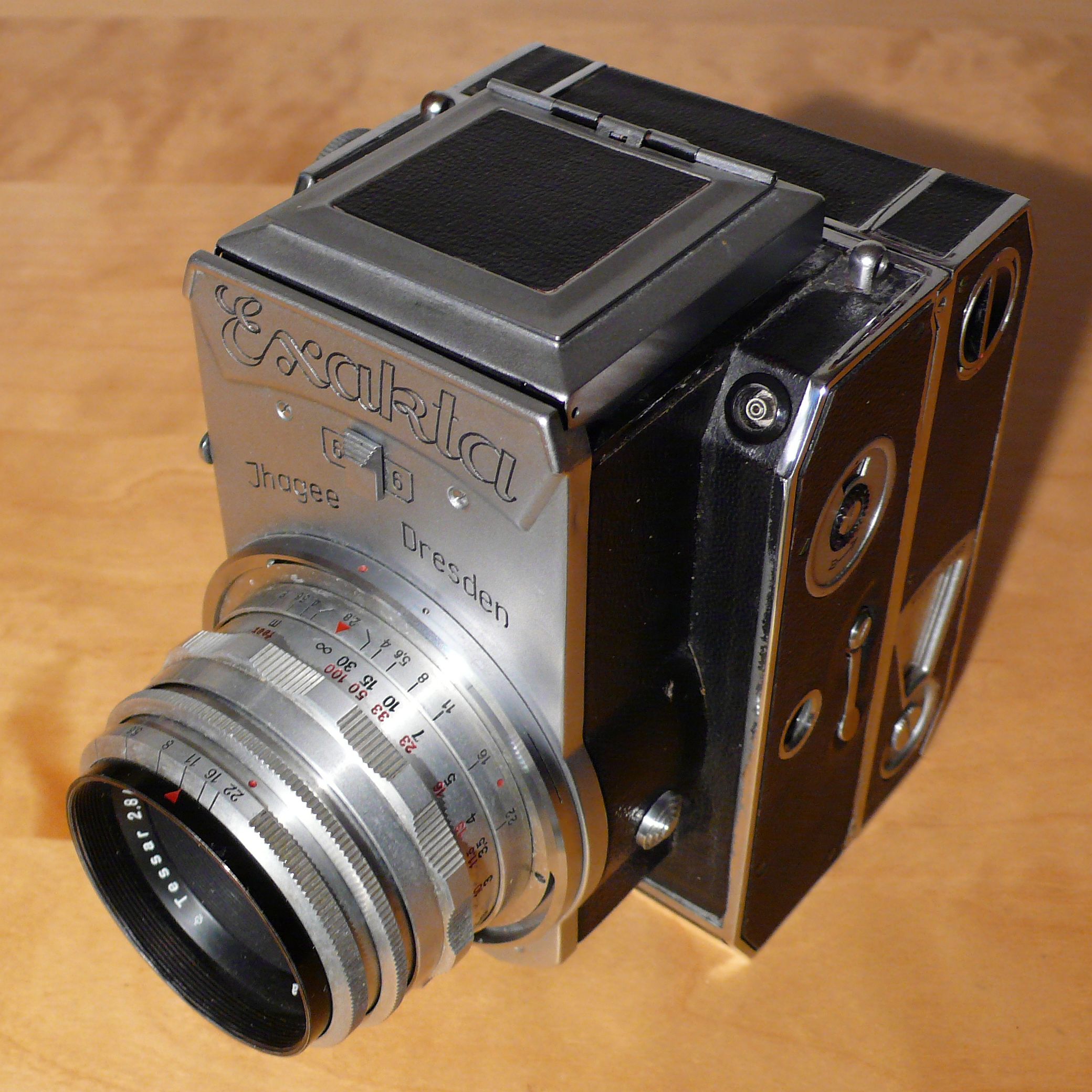 Mit der Exakta 66 vertical - die Tücher bewegen sich von oben nach unten - wollte man der Welt zeigen, dass immer noch Dresden das Mekka der Fotografie war. Das neuartige Box-Modell, das zwei "ineinandergreifende" Spiegel aufweist (Bild 4), wurde 1952 vorgestellt, aber wegen Anfälligkeit des Bildzählwerks schnell eingestampft. Man fürchtete um seinen guten Ruf. Der Konstrukteur soll das Weite gesucht haben.
