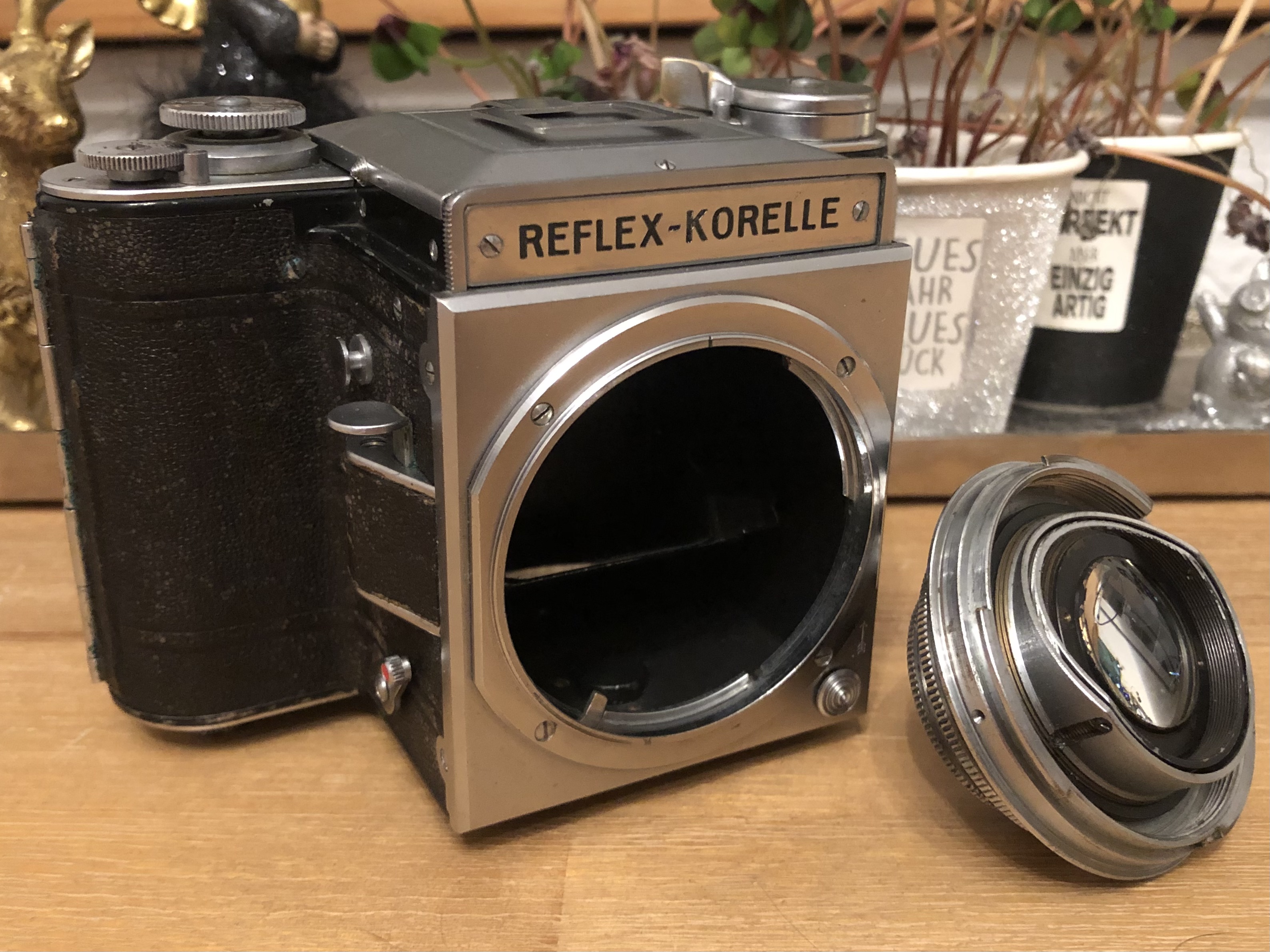 Hersteller: Kochmann/ Korelle-Werk Modell: Reflex-Korelle III Baujahr: 1938-1940 Format: Rollfilm 120, 6 x 6cm Objektiv: Wechseloptik, eigenes Bajonett Verschluss: Gummituchschlitzverschluss Verschlusszeiten: B, 2 s bis 1/1000 s Filmzählwerk: ja Filmtransport: Schnellschalthebel Selbstauslöser: ja Sonstiges: Stativgewinde, Doppelbelichtungssperre, Sportsucher