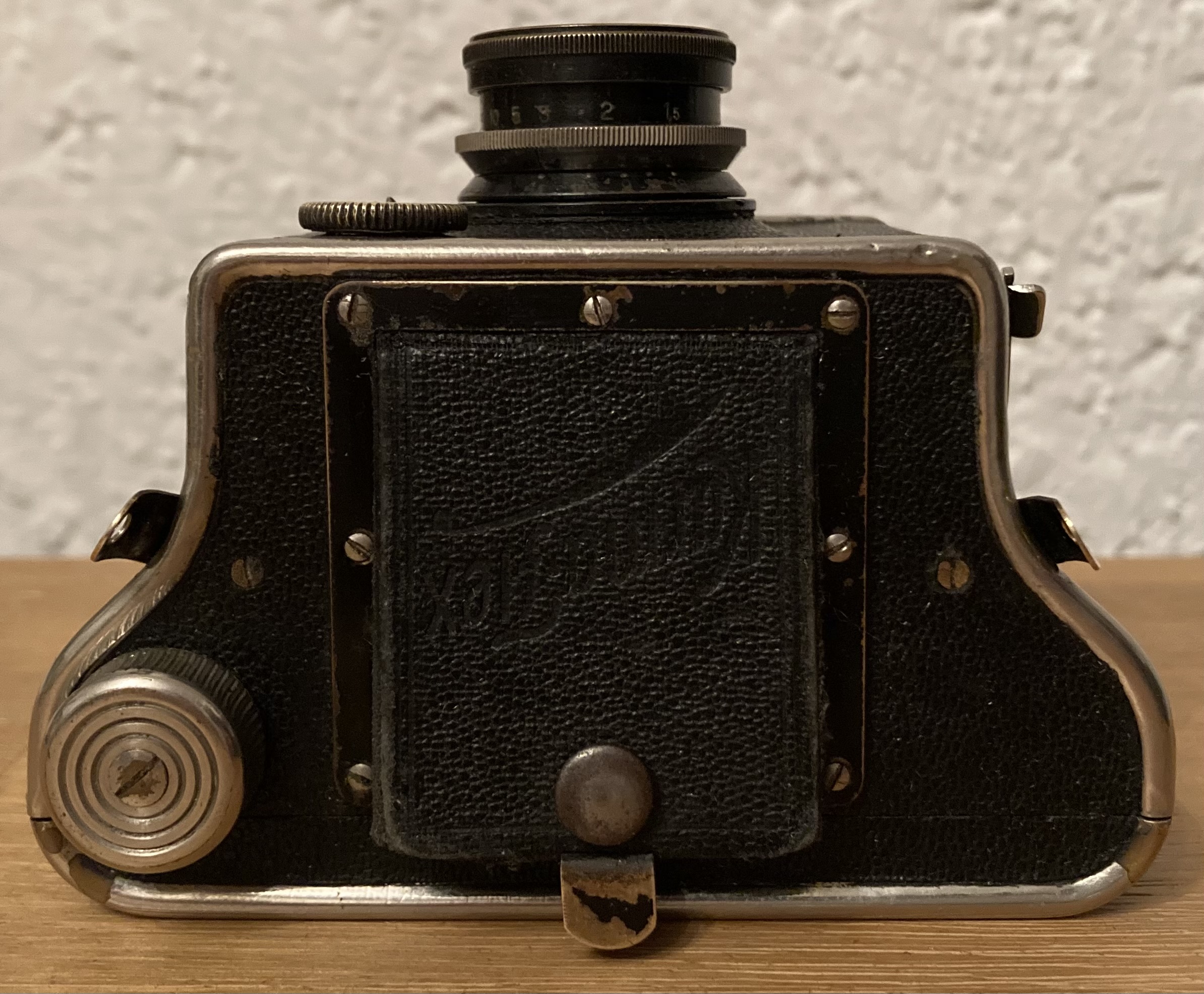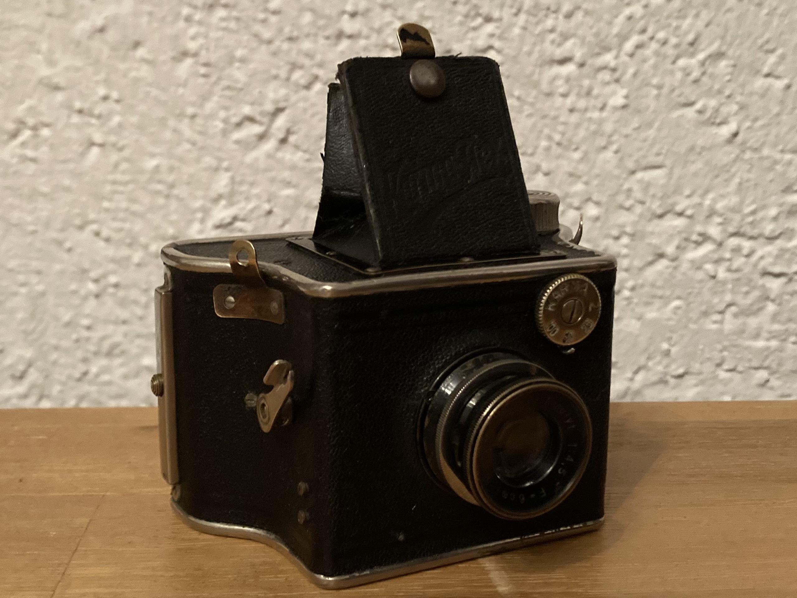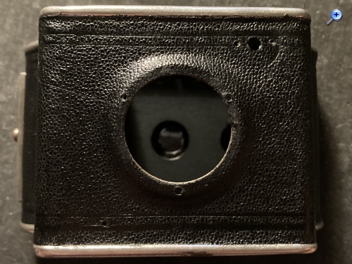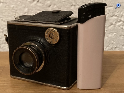 Die Konstruktion ist für eine so kleine „einfache“ Kamera extrem durchdacht und enorm aufwändig. Als Verschluss dient ein hauseigener Zweisektorenverschluss mit drei Zeiten (1/25, 1/50, 1/100) und Z (B) der als eigenes Element auf einer Messingplatte in das Blechgehäuse gebaut ist.