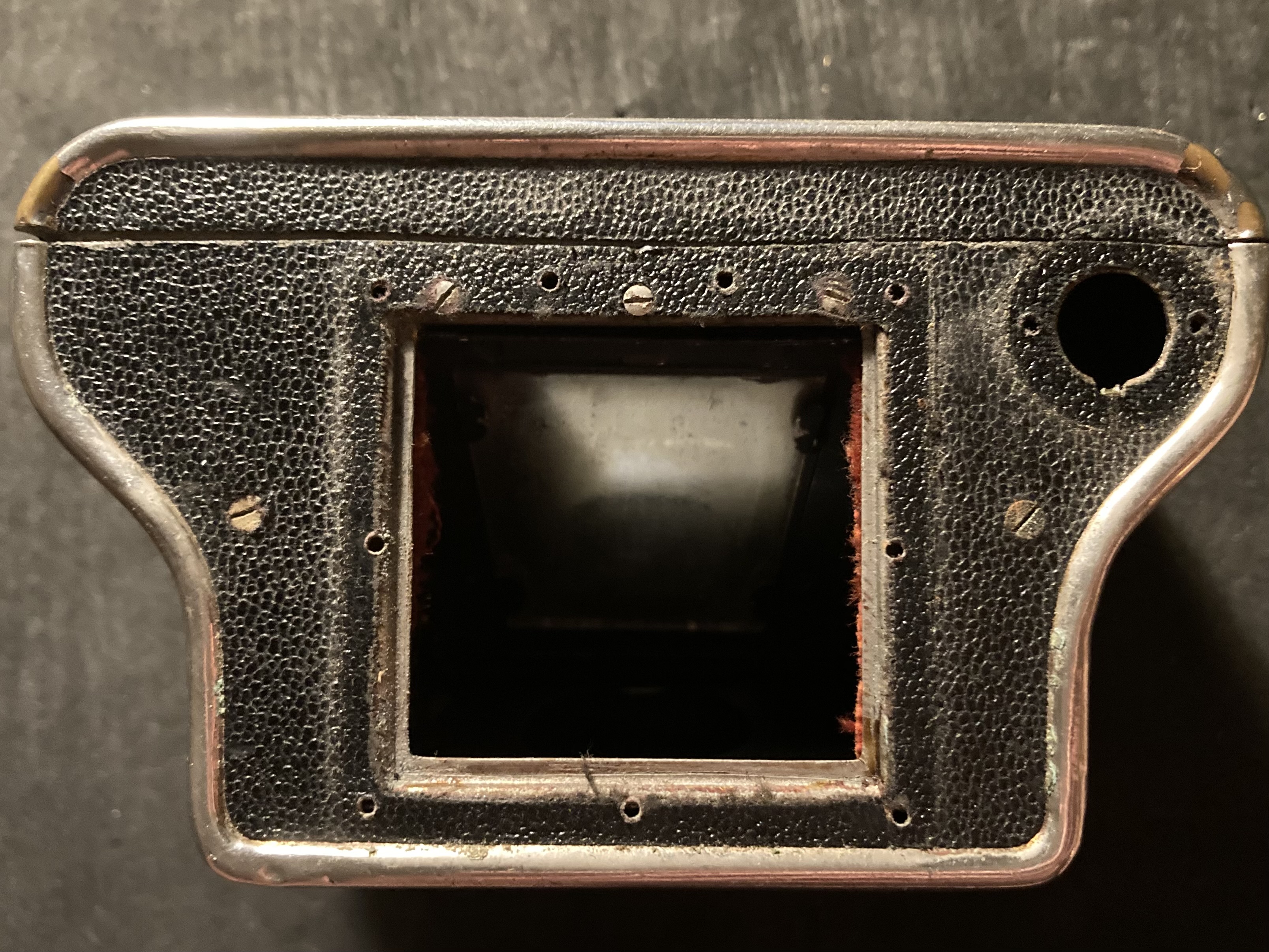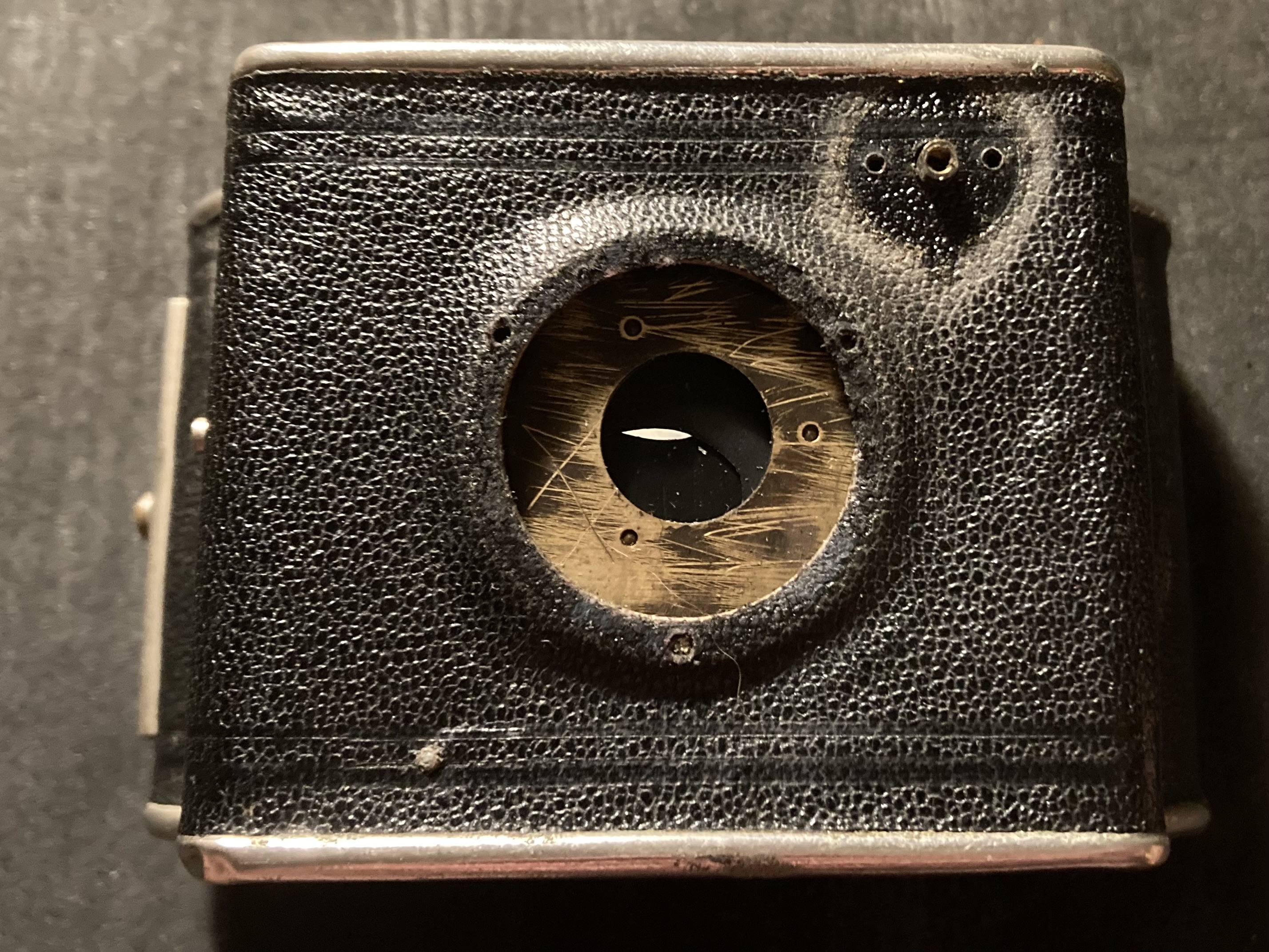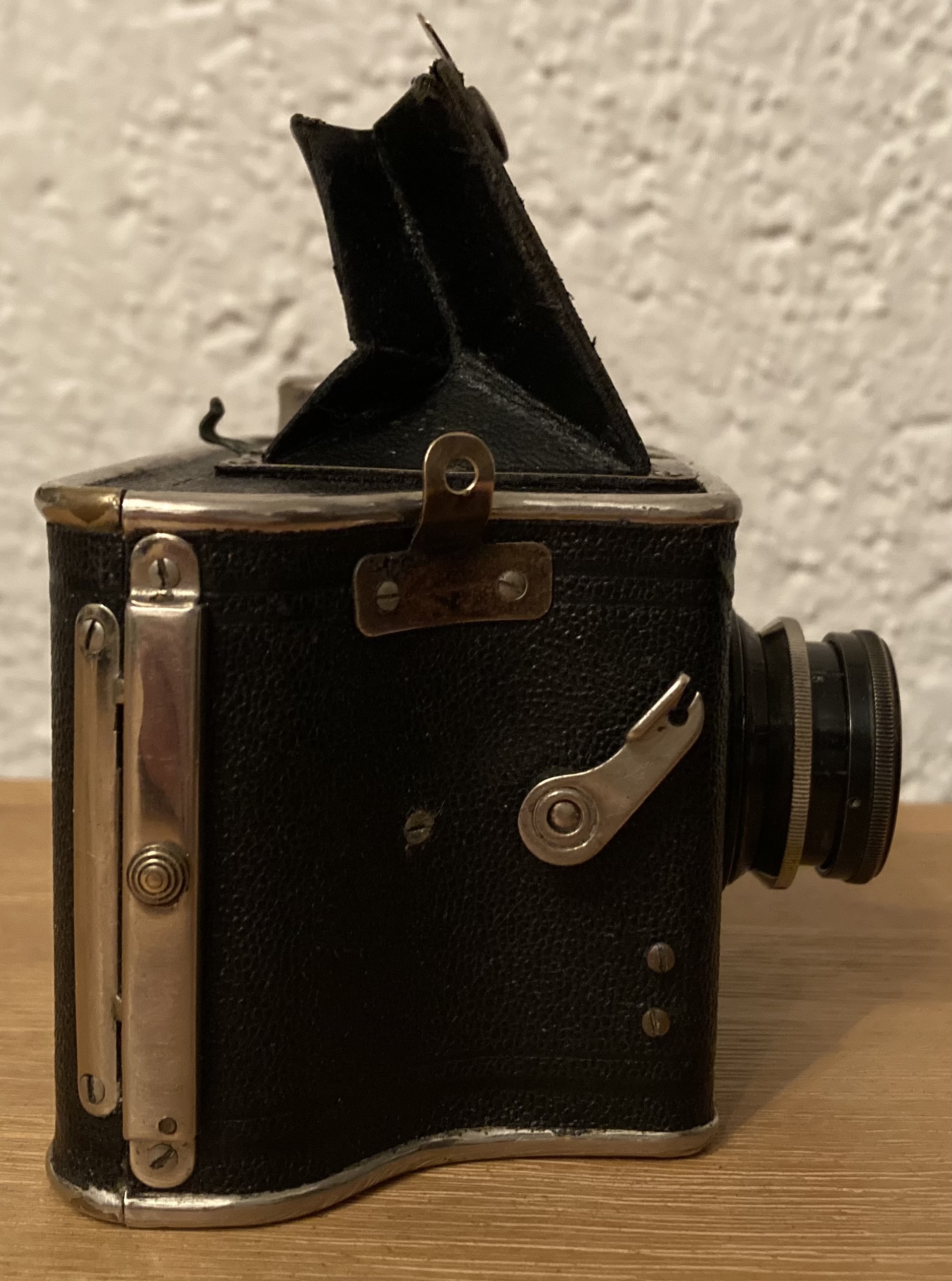 Die Konstruktion ist für eine so kleine „einfache“ Kamera extrem durchdacht und enorm aufwändig. Als Verschluss dient ein hauseigener Zweisektorenverschluss mit drei Zeiten (1/25, 1/50, 1/100) und Z (B) der als eigenes Element auf einer Messingplatte in das Blechgehäuse gebaut ist.