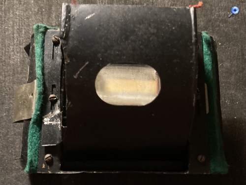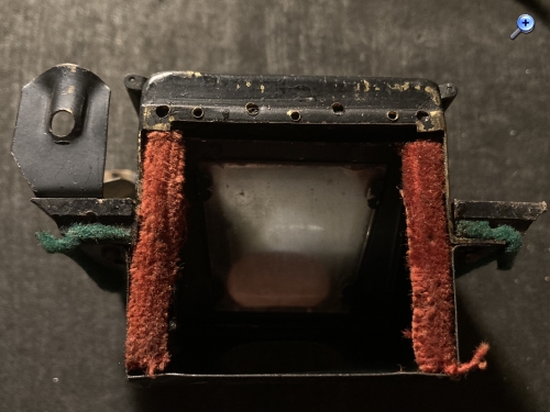 Als Objektiv dient hier ein Laack Regulyt 4,5/6cm, interessanterweise mit M25-Gewinde was mögliche Wechselobjektive vermuten lässt. Der Spiegelkasten lässt sich ganz einfach nach dem Lösen von lediglich 22 Schrauben nach hinten aus dem Gehäuse fummeln wobei hier Vorsicht geboten ist da es sich ebenfalls um eine Blechkonstruktion handelt die jedoch noch fragiler als das Gehäuse ist.