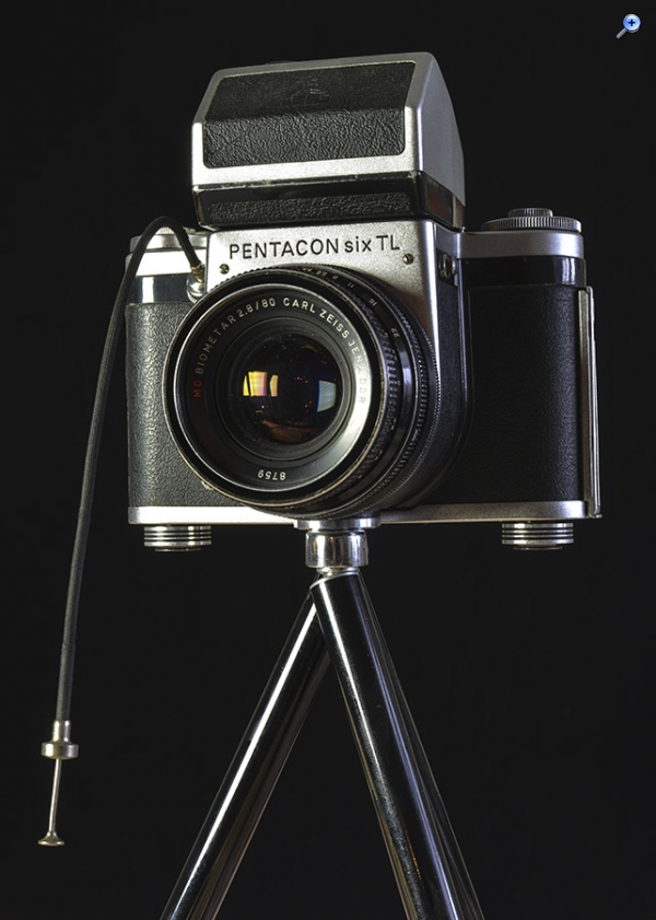 Die Six TL mit der 4,5x6 cm Maske dürfte mit Teilen des Sondermodells Pentacon Six TLs, die für die Polzei gebaut wurde, umgebaut sein.
