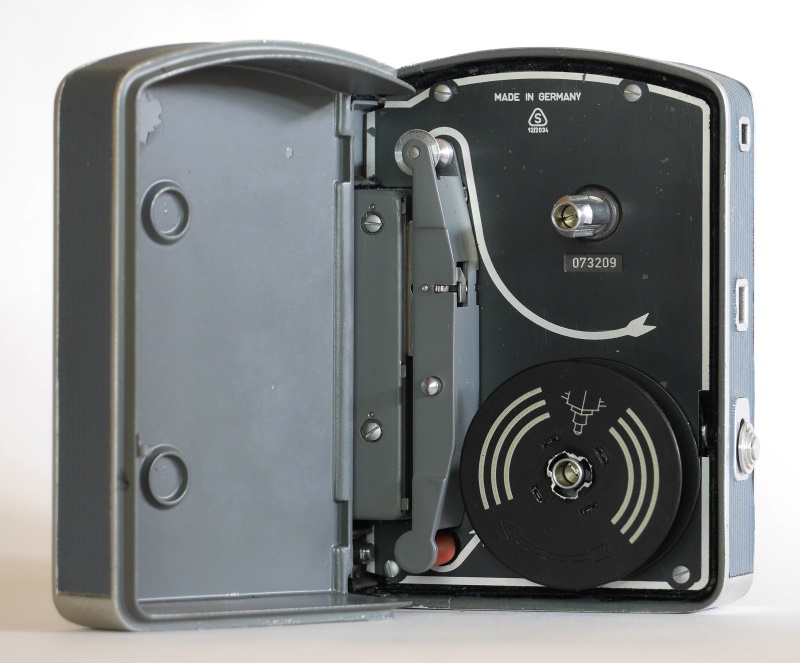 Eine robuste, fertigungstechnisch einfach aufgebaute Filmkamera für 7,5m Doppel8-Tageslichtspulen. Mit dem Nötigsten ausgestattet, mit einem Fixfokus-Objektiv, Zeiss Triotar 2,8/10mm, einer Bildfrequenz von 16B/Sek, Einzelbild, Dauerlauf und einem Anschluss für Filmrückwicklung (max. 40 Bilder). Einfaches Filmeinlegen ohne Zahntrommel und leichtes Reinigen der Filmführung. Typisch der Ring um den Auslöser an der Frontseite mit den Einstellungen Lauf (L), Dauerlauf (D) und Einzelbild (E). Die älteren Modelle waren auf der Rückseite mit einer Öse für eine Handschlaufe versehen.