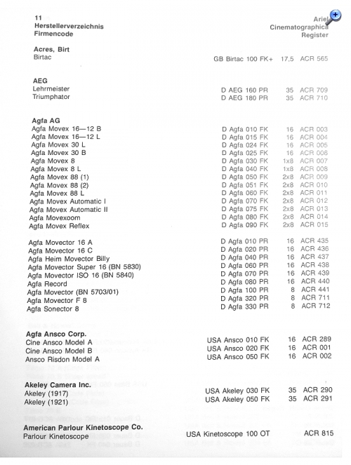 Vielleicht noch der Hinweis: Das ACR stammt noch (größtenteils) aus der Vor-Internet-Zeit und einem Zeitraum des Übergangs von Papier zu EDV. Bei Insidern ist das Werk durchaus bekannt, auch bei Museen und sonstigen Institutionen die sich mit Cinematographica befassen.